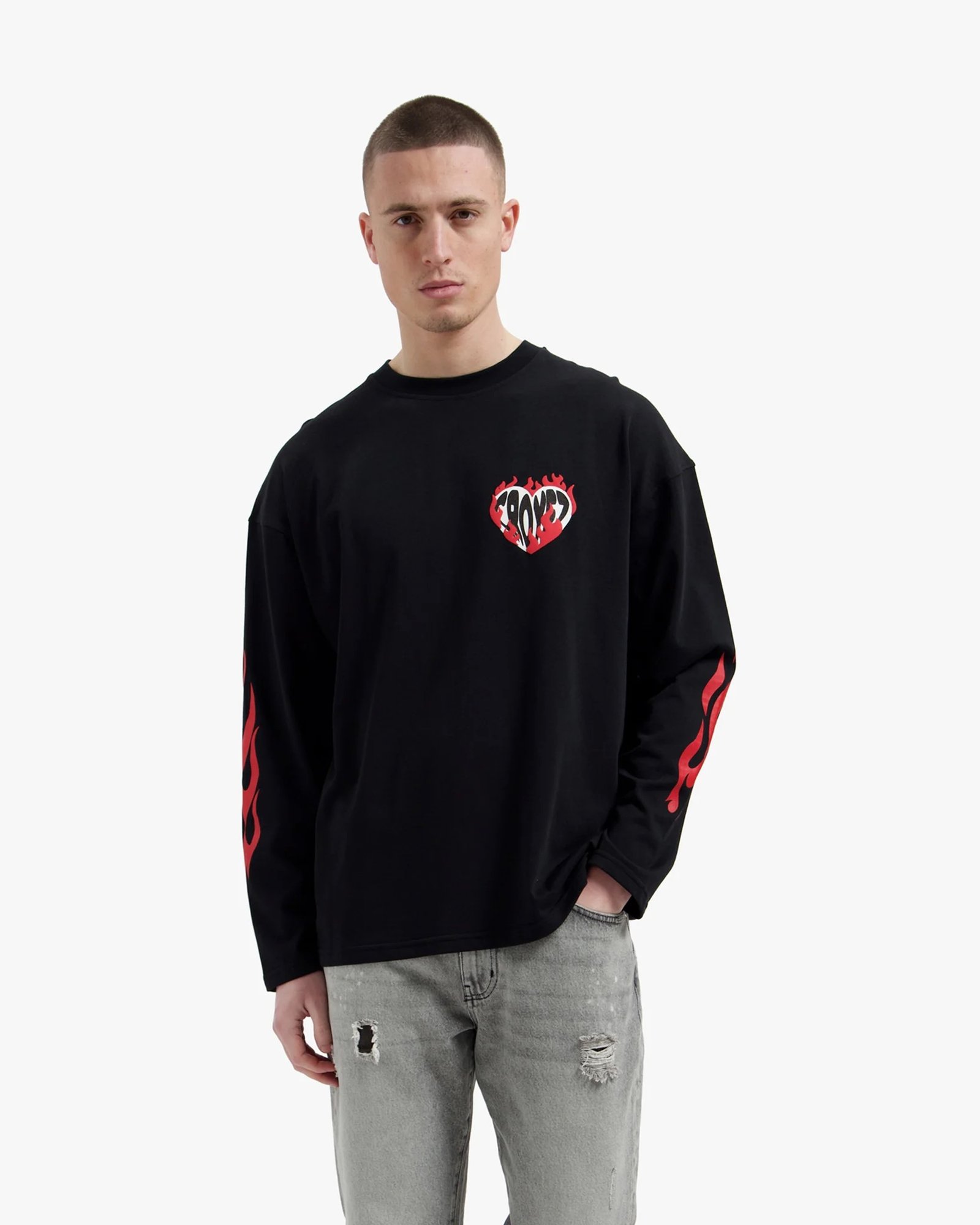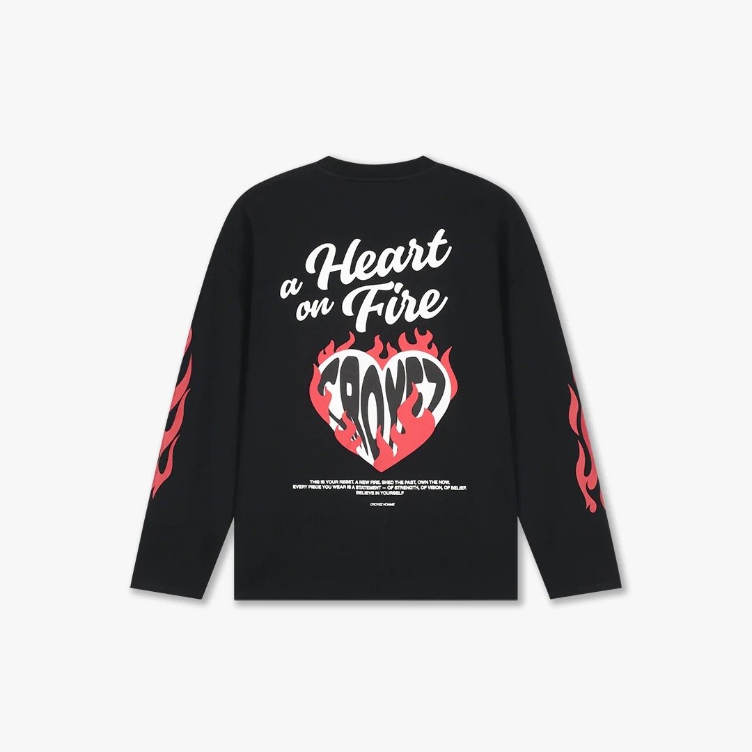 Het Croyez Heart On Fire Longsleeve T-shirt met lange mouwen heeft een oversized pasvorm en een comfortabele fit. De longsleeve is uitgevoerd in 100% katoen en voelt prettig aan tijdens het dragen. Door de ruime pasvorm valt het item oversized en is het makkelijk te combineren.Pasvorm: Oversized
