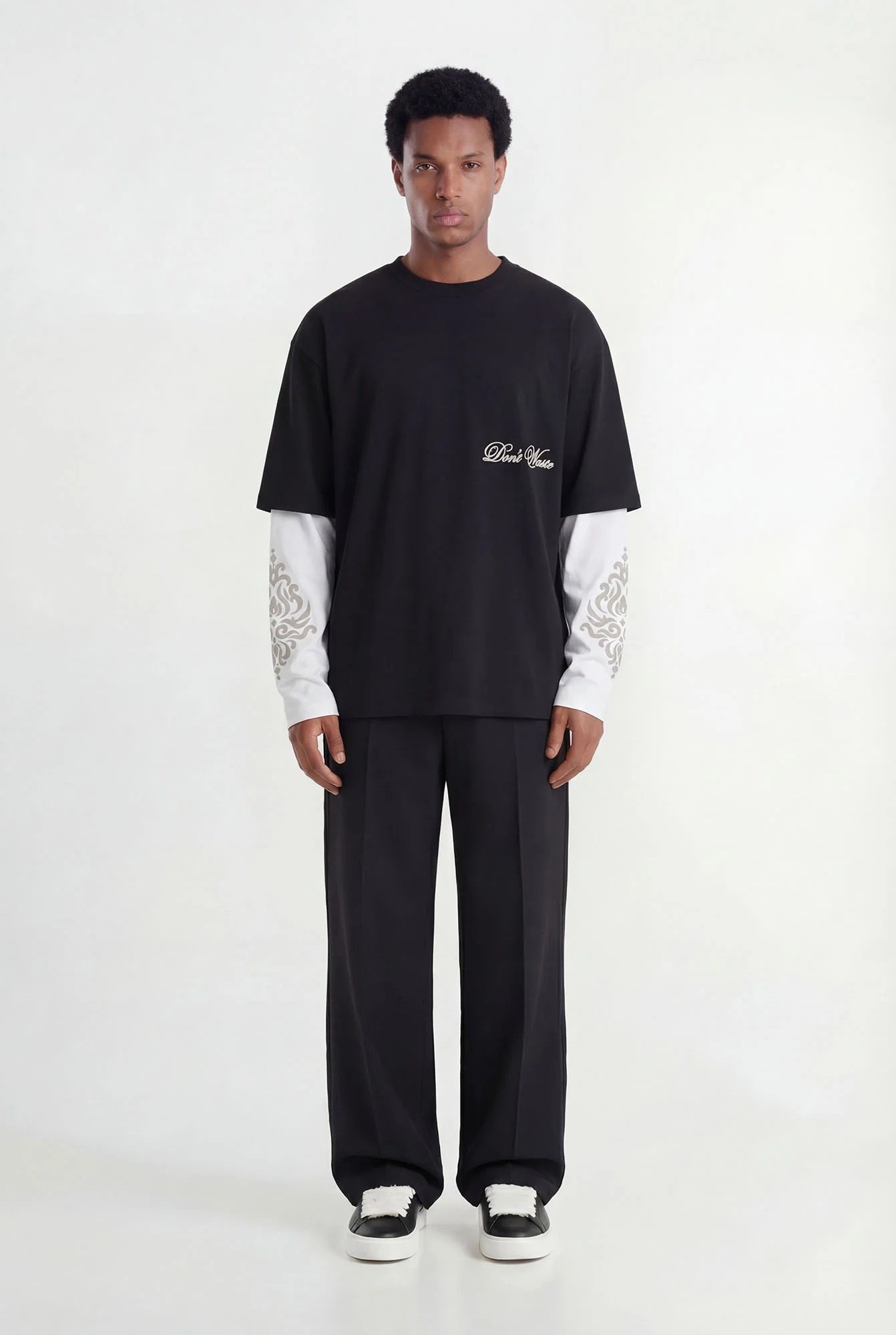 The Alare longsleeve is built as a single piece with the appearance of layers. It carries the look of a T-shirt worn over a longsleeve, but keeps the structure clean and controlled.