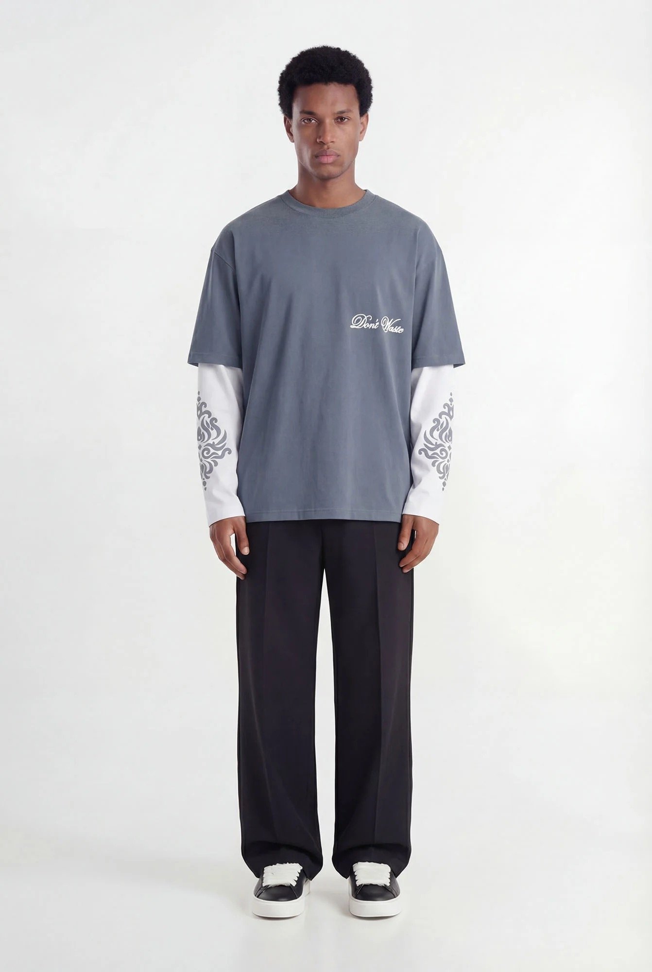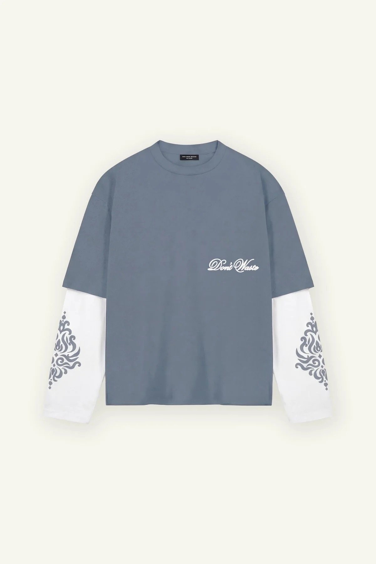The Alare longsleeve is built as a single piece with the appearance of layers. It carries the look of a T-shirt worn over a longsleeve, but keeps the structure clean and controlled.