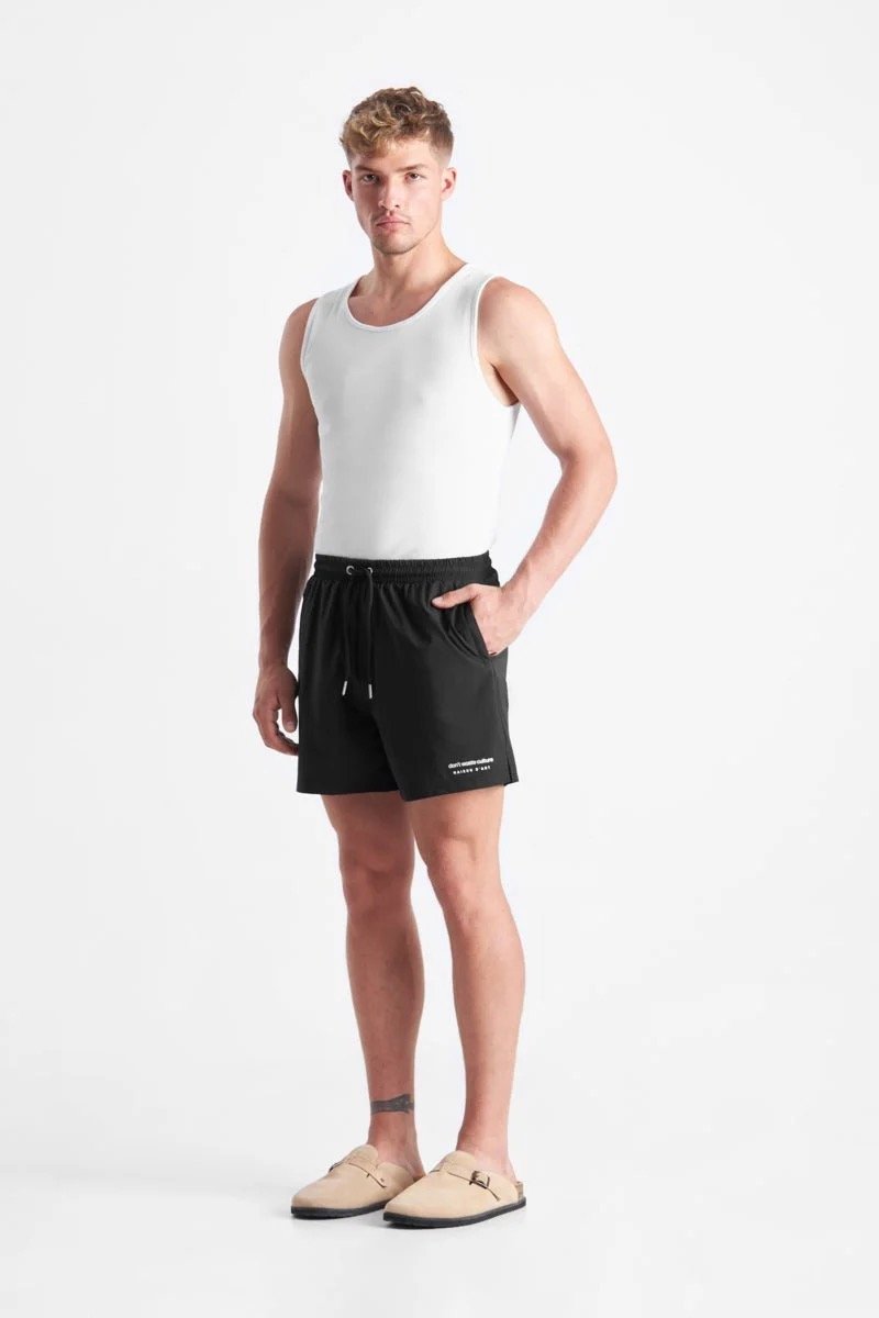 Introducing Fela, a luxury essential swimshort with a screenprinted ‘Maison d’Art’ logo. Finished with nylon zip pockets and a metal eyelet on the back for efficient water drainage. Perfect for a day at the beach or pool, these swimshorts are designed for both comfort and durability. Gear up for summer with this must-have.
