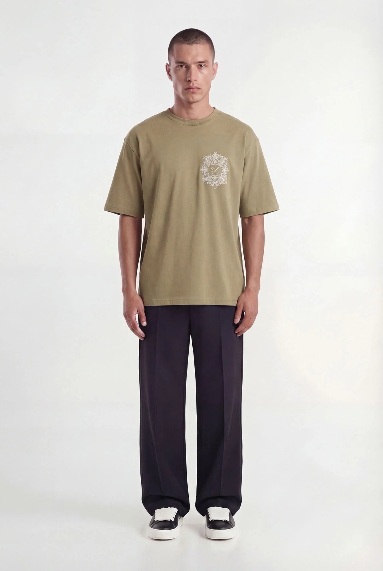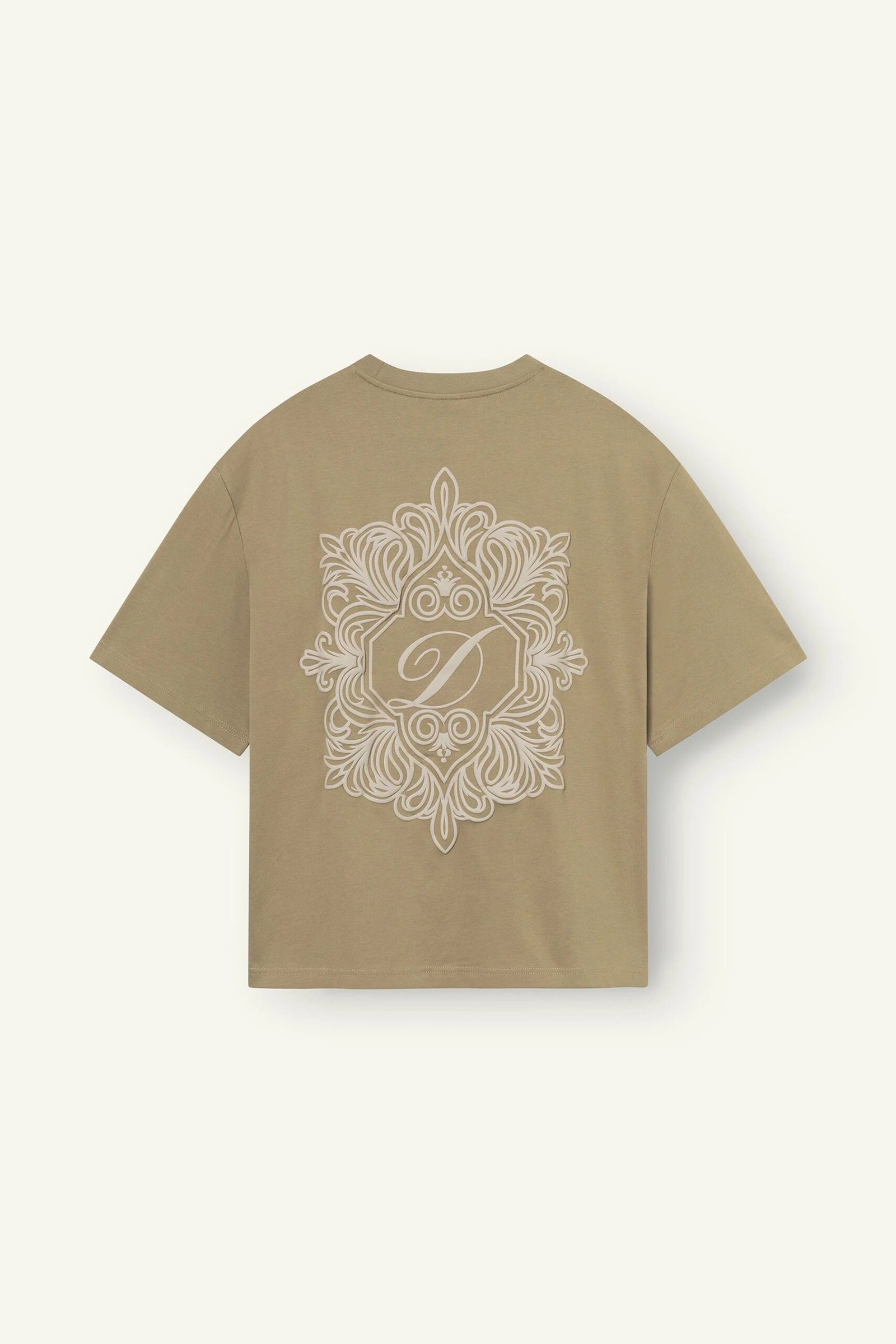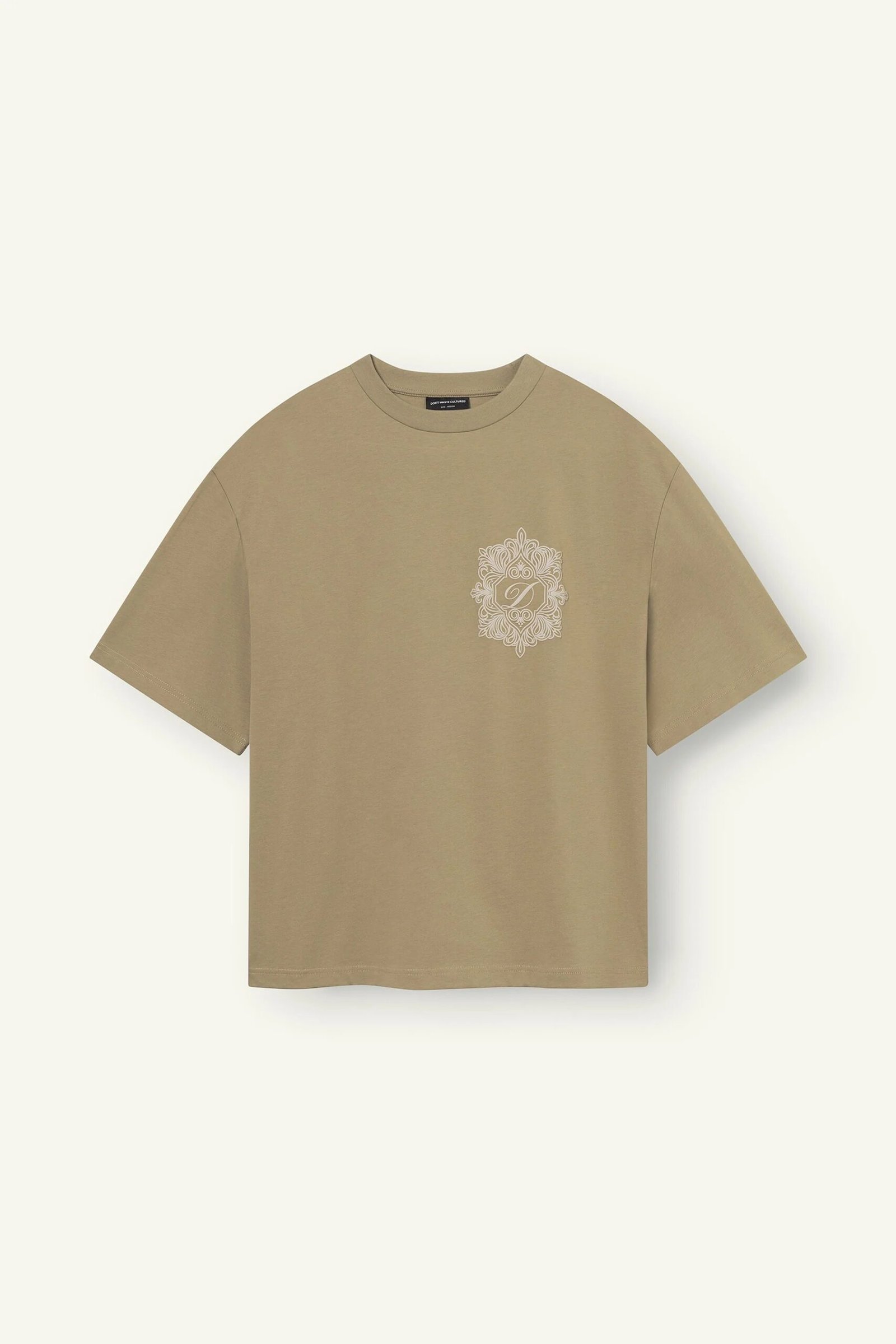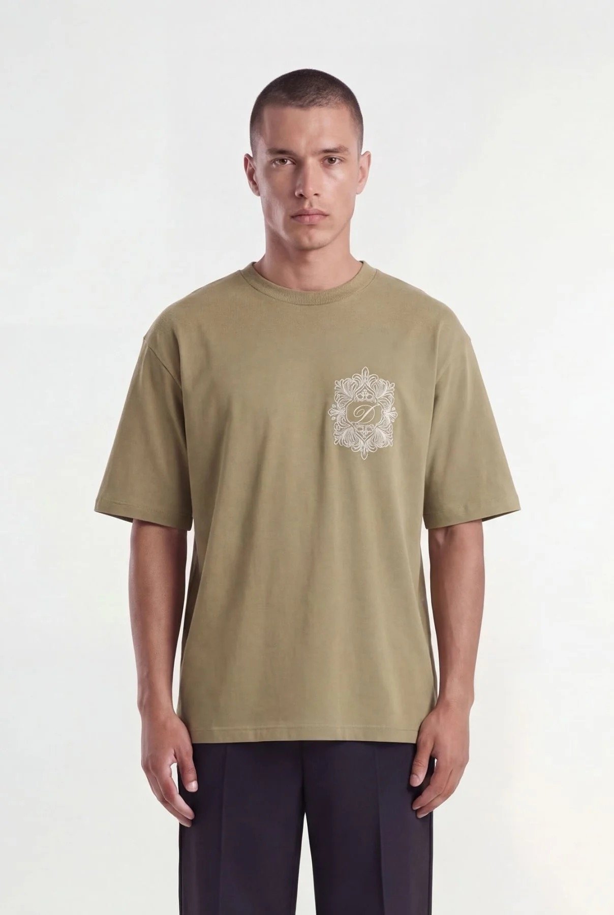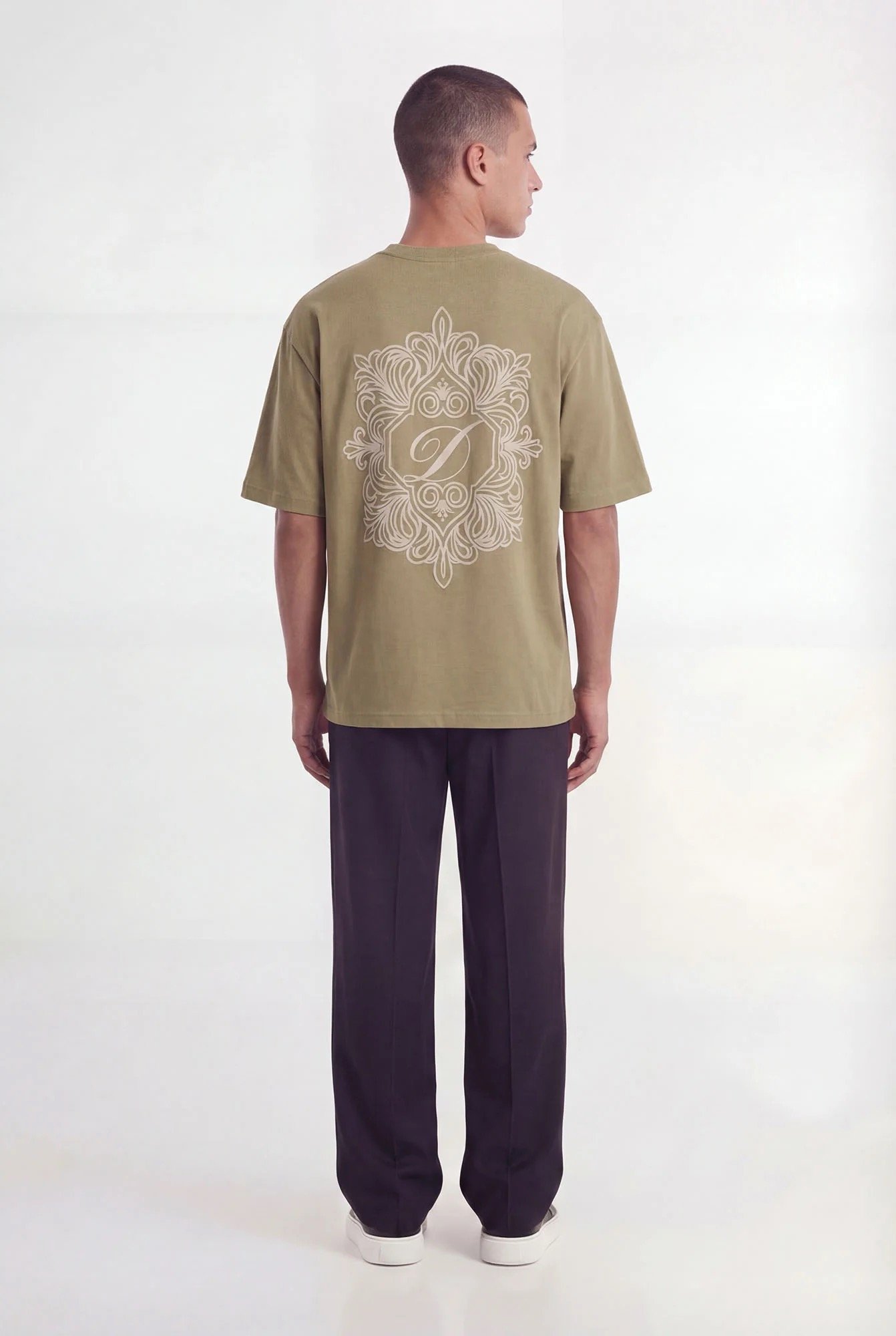 Made from 230gsm cotton, the fabric offers a balanced weight that holds its shape while remaining comfortable throughout the day. The slightly oversized fit provides a relaxed silhouette with clean proportions. The puff print on both front and back adds subtle dimension, giving the ornament depth without creating visual noise.