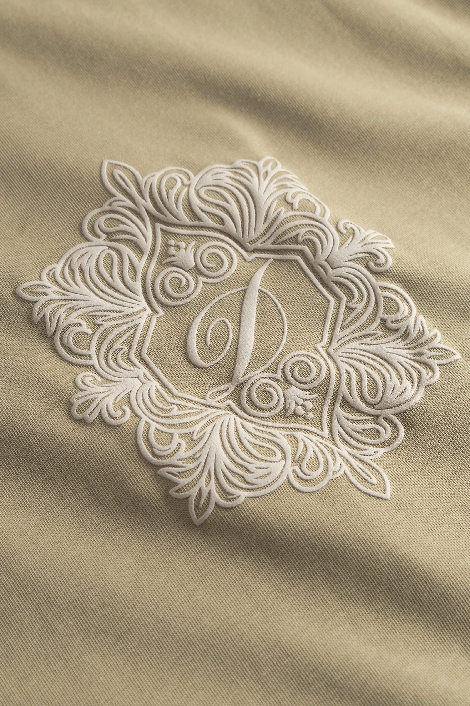 The Umeka T-shirt interprets Puglian ornamentation through texture rather than bold contrast. The design is present, yet restrained — integrated into the garment instead of placed on top of it.