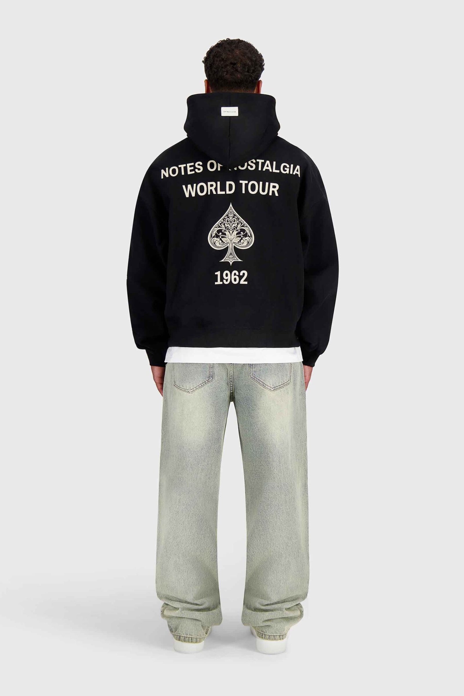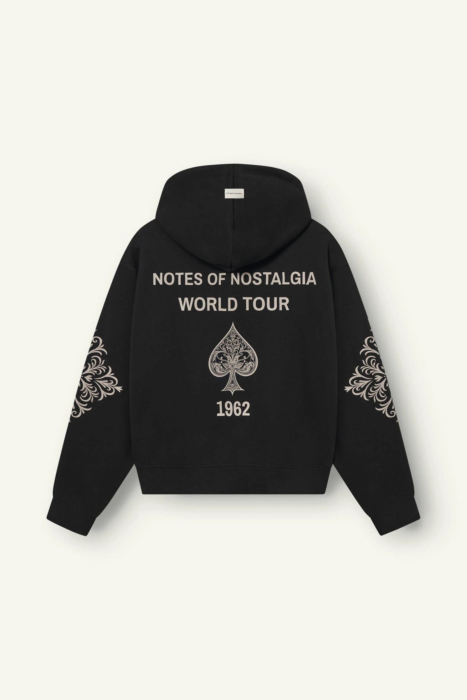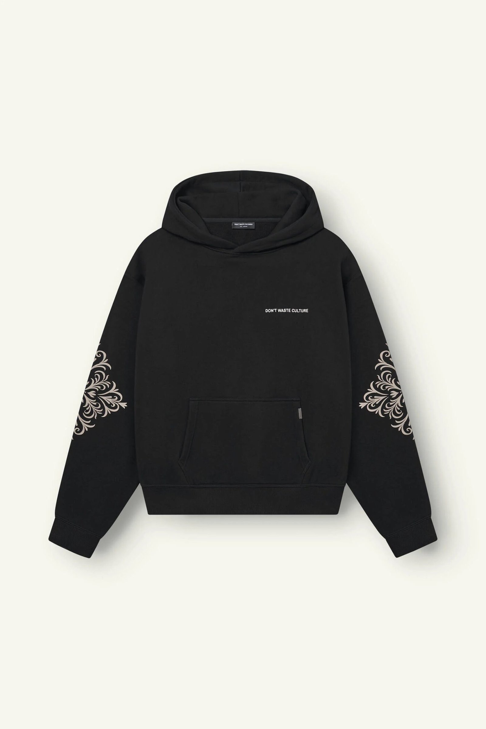 De Yulani Hoodie van Don’t Waste Culture vertaalt de melancholische sfeer van de Notes of Nostalgia collectie naar een gewassen zwarte hoodie. De oversized fit, ornament prints langs de mouwen en grote rugprint geven de trui een artistieke, gedragen look. Subtiele branding op de borst, achteraan vertelt de hoodie het verhaal. Perfect om te combineren met faded jeans voor een moeiteloos goede DWC-fit.Features:
