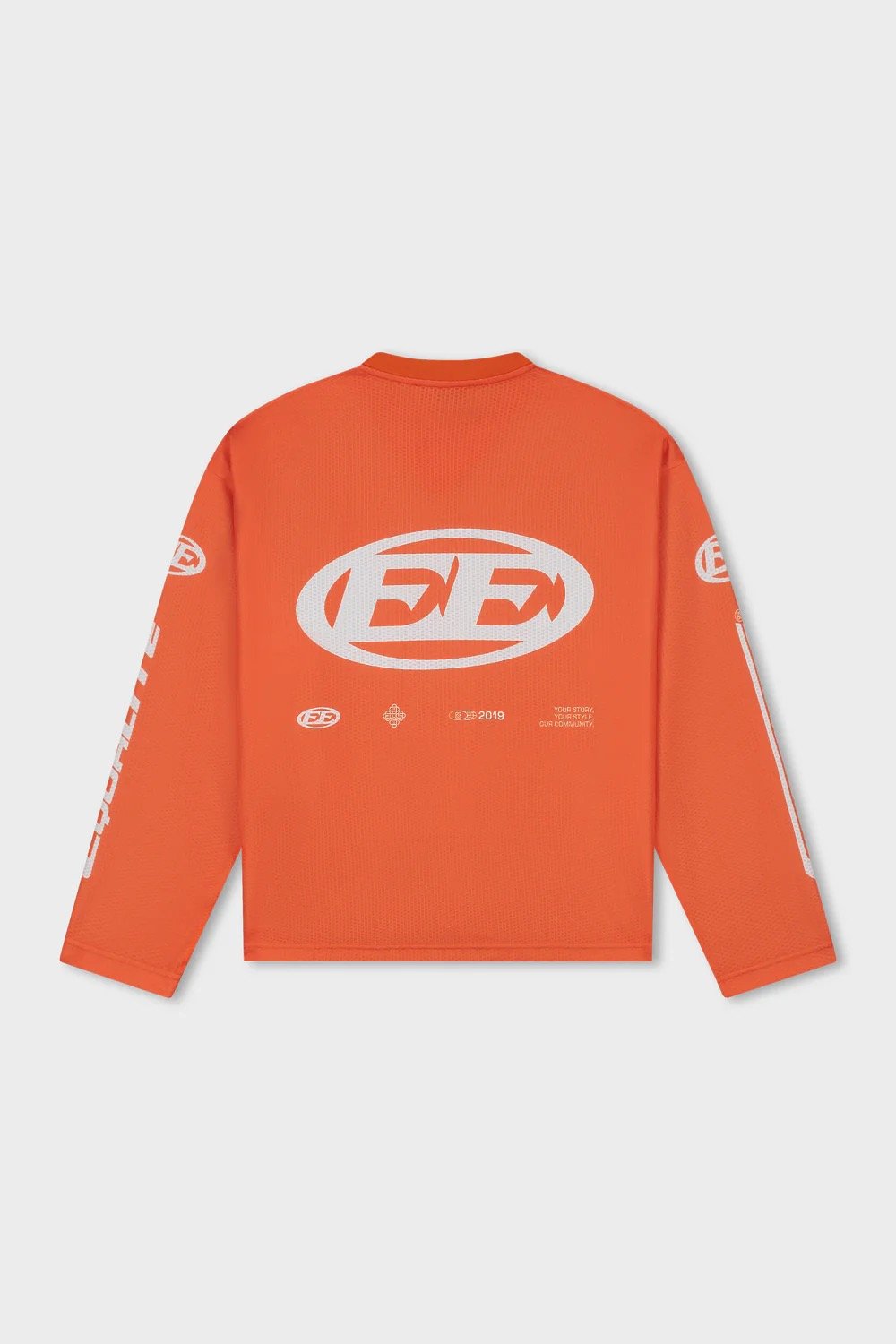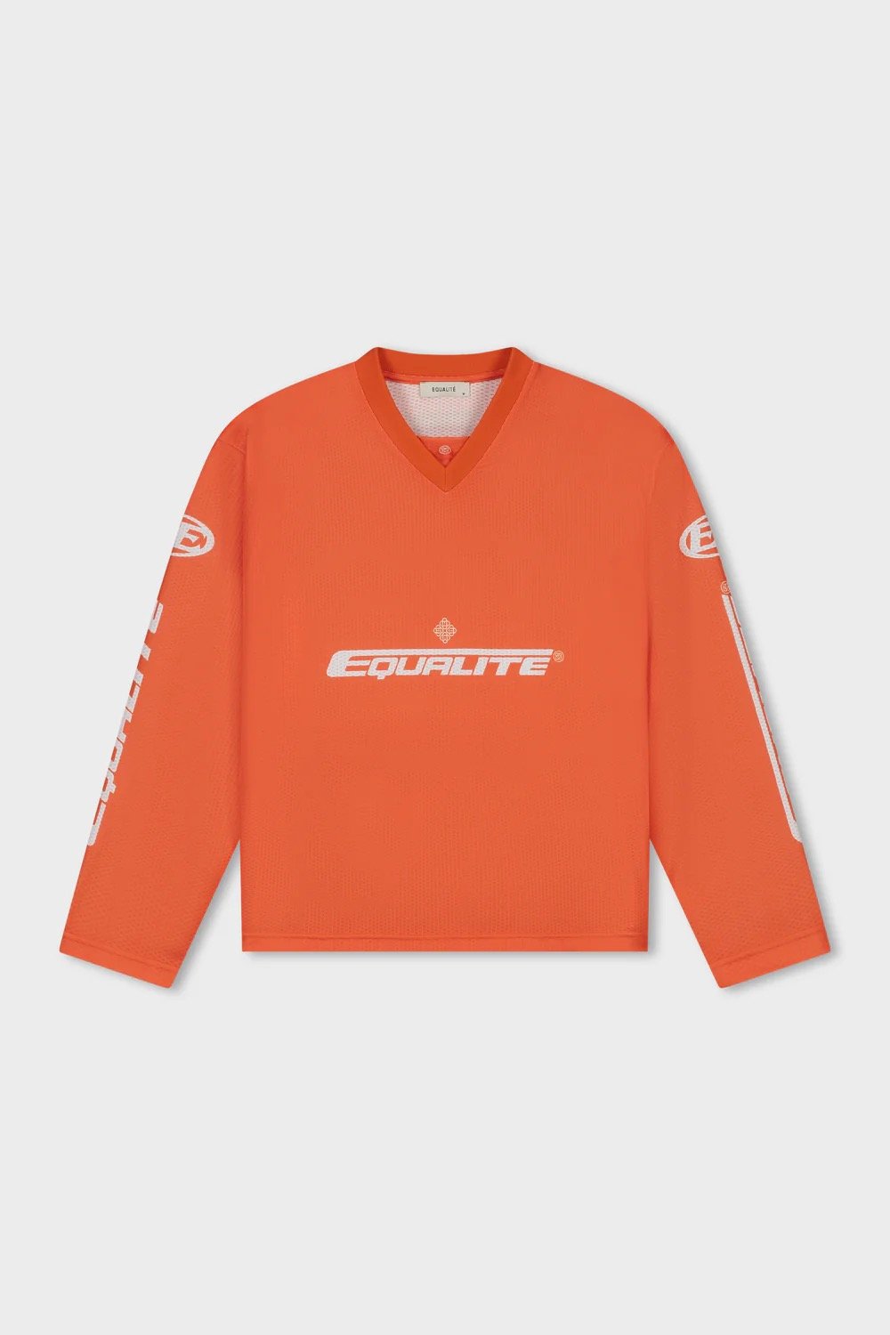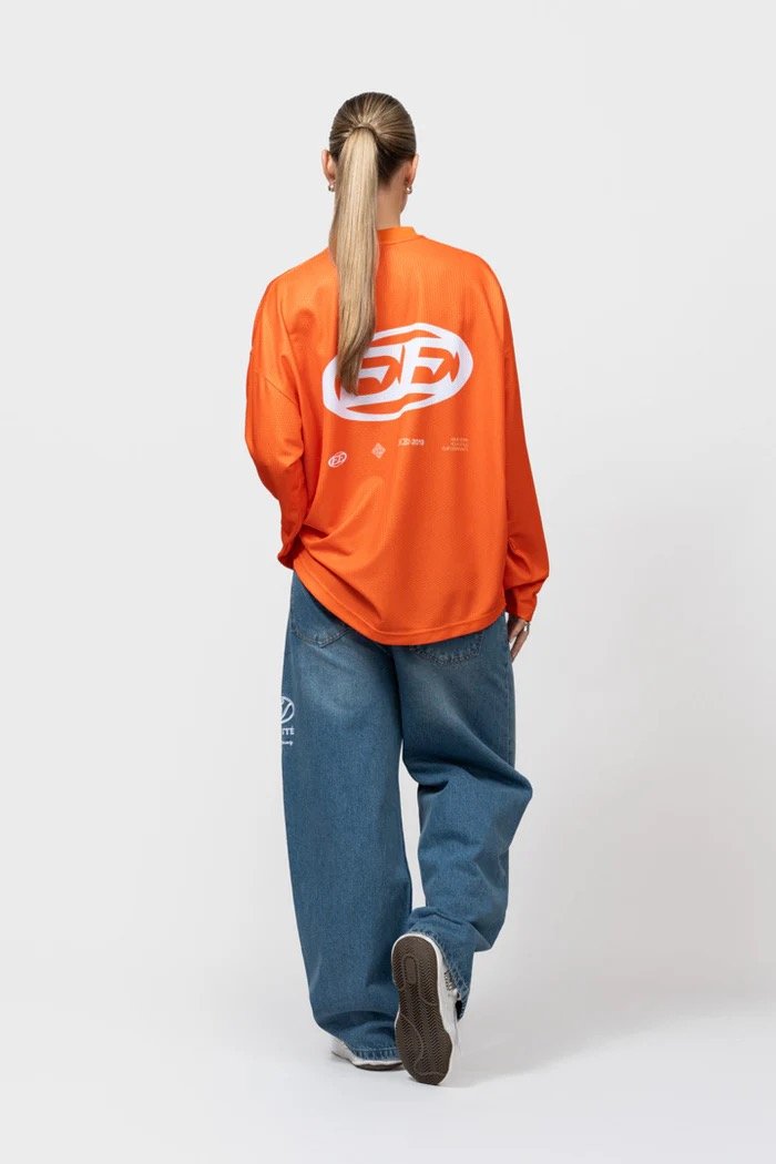King’s Day Collection: Discover de Equalité Arena Longsleeve Jersey in Orange. De longsleeve heeft een oversized fit en is gemaakt van een exclusieve mesh-stof die zorgt voor ultiem comfort en ademend vermogen. De jersey is voorzien van een V-hals kraag en witte zeefdruk artworks op de borst, rug en mouwen.