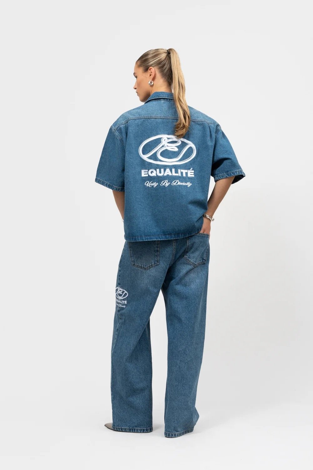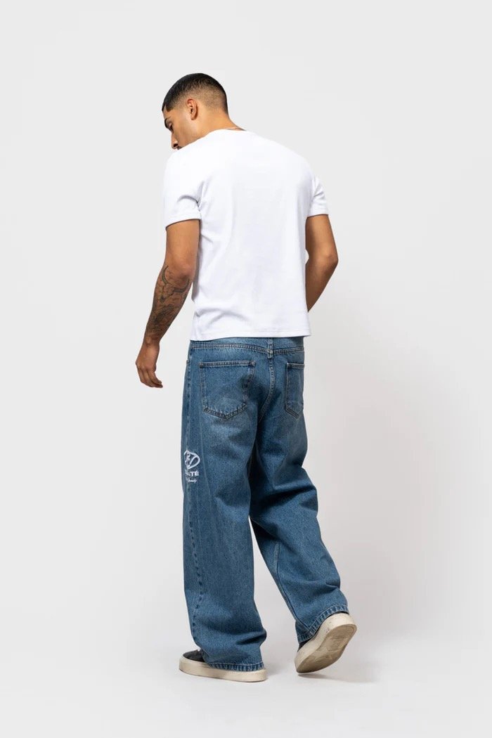 Meet de Equalité Arid Jeans in Blue. De jeans heeft een baggy fit en is voorzien van een ritsknoopsluiting, 2 steekzakken en 2 achterzakken. Het linkerbeen is voorzien van een geborduurd Arid logo. Deze jeans is onderdeel van een set en is te combineren met een bijpassende denim jacket.