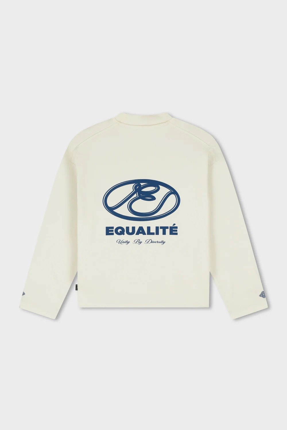 Discover de Equalité Arid Oversized Longsleeve Tee in Off-white & Blue. De longsleeve tee heeft een oversized fit en is voorzien van een ronde kraag. Op de borst en de rug zit een zeefdruk van het Arid artwork.