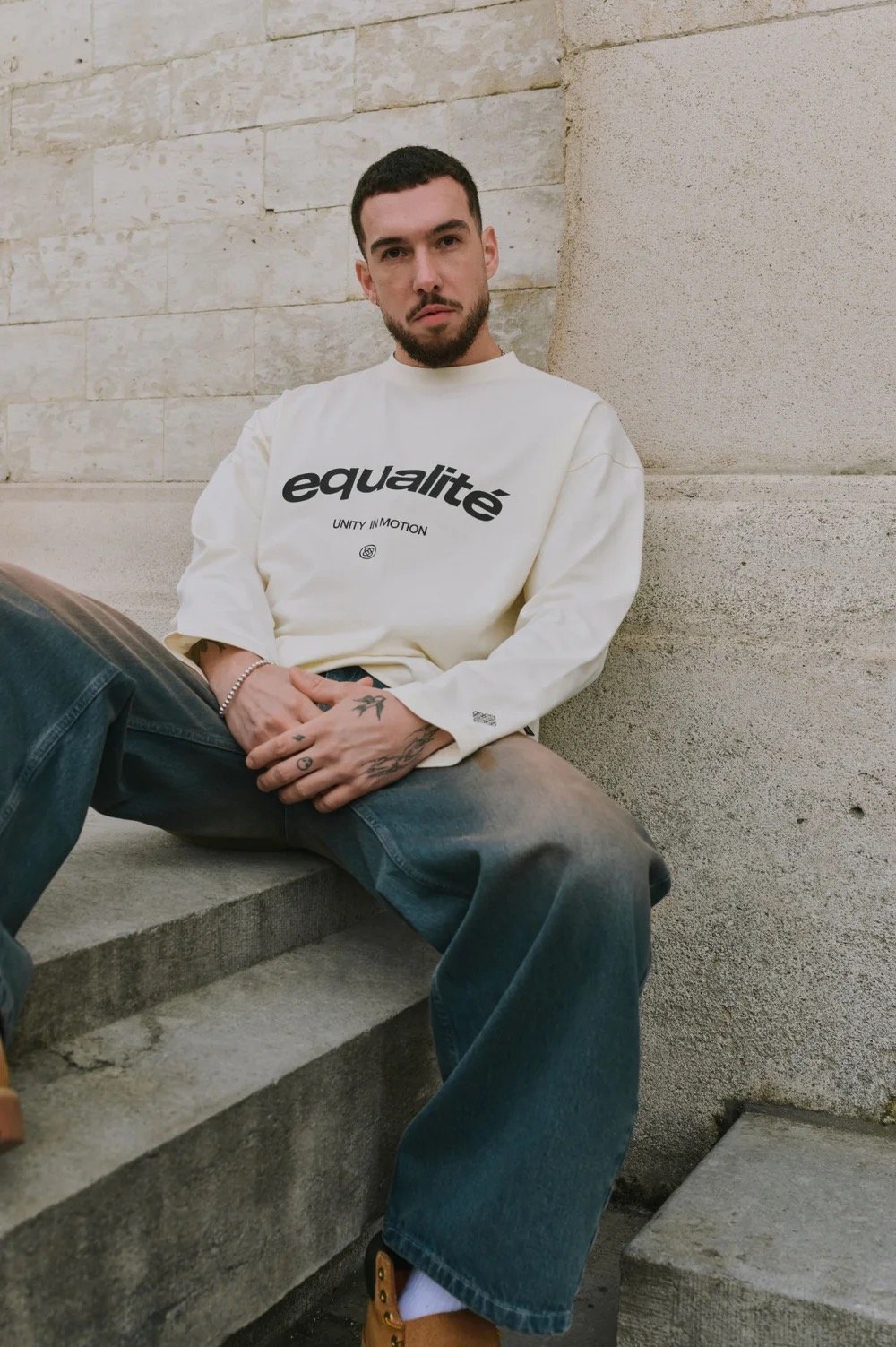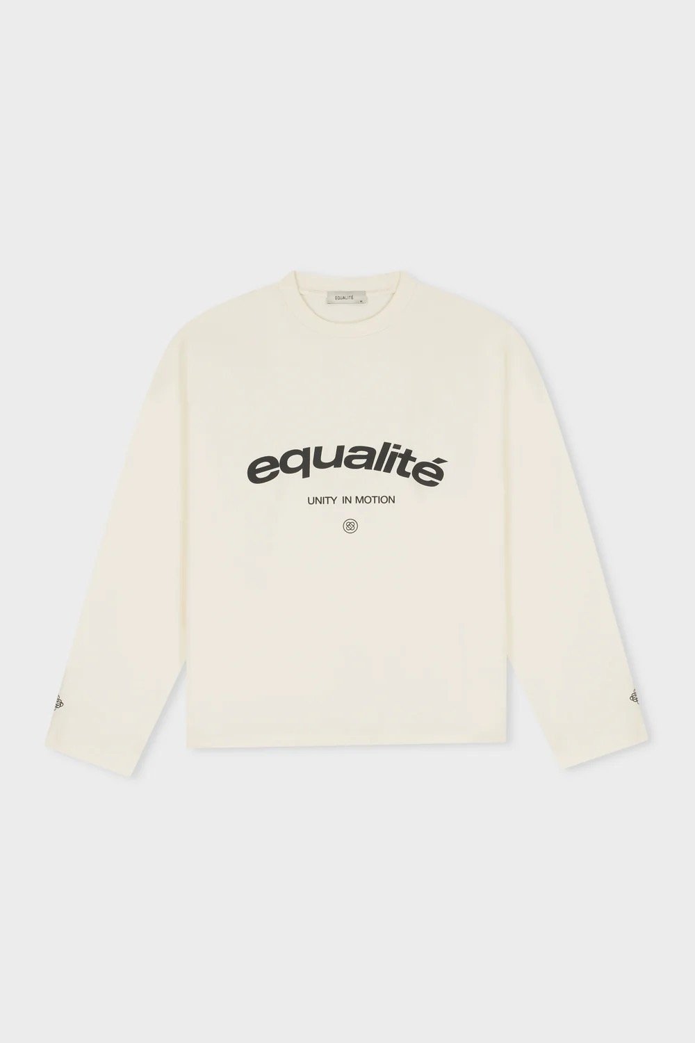 Discover de Equalité Celeste Longsleeve Tee in Off-White. De longsleeve tee heeft een oversized fit en is voorzien van een ronde kraag. Op de borst en de rug zit een zwarte zeefdruk van het Celeste artwork.