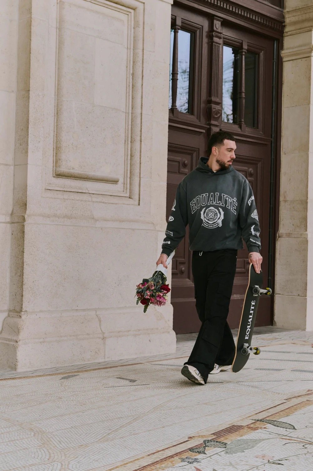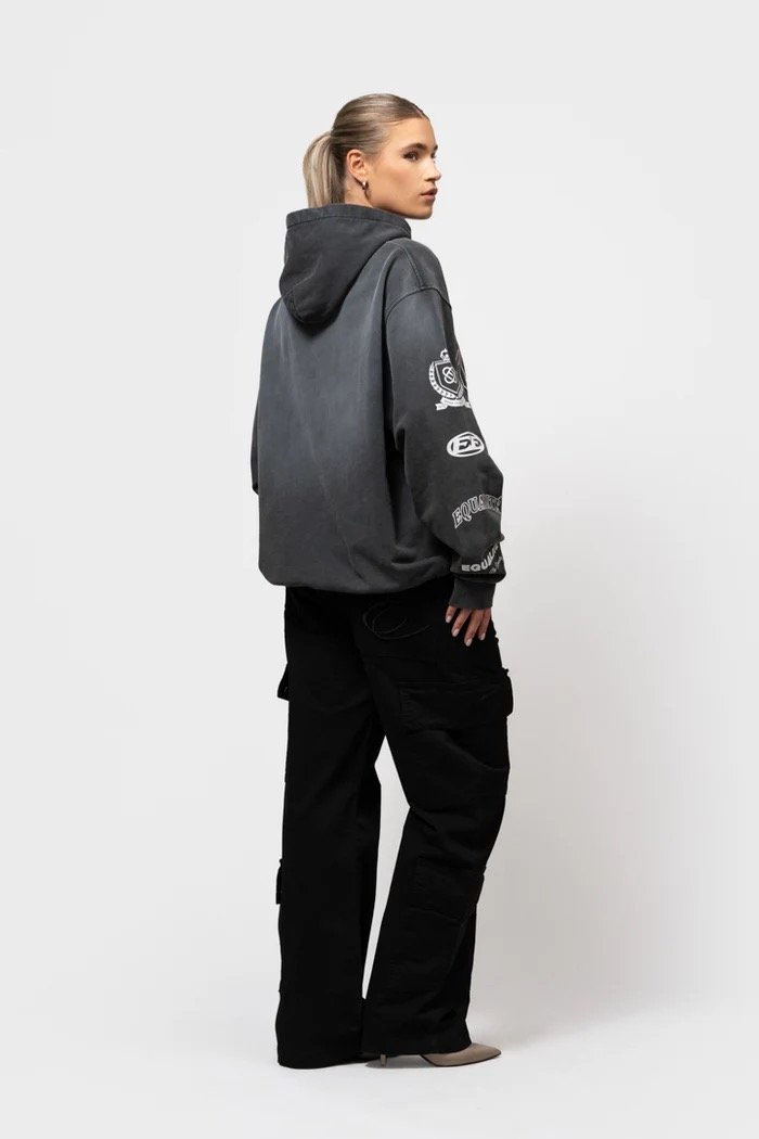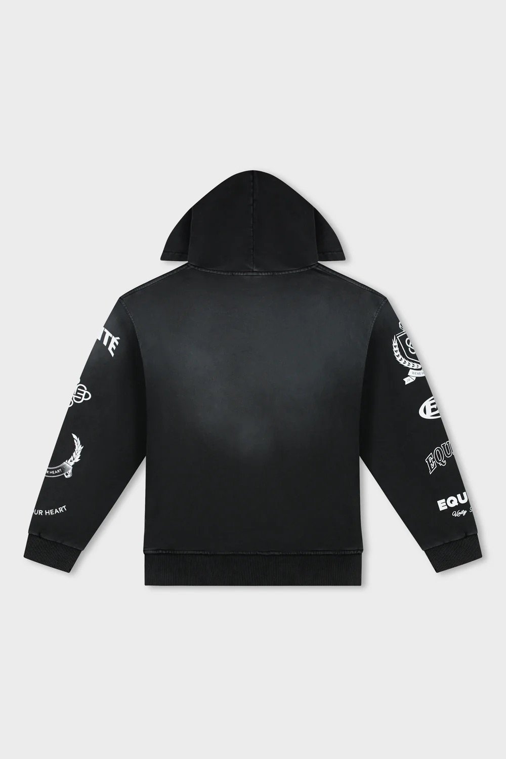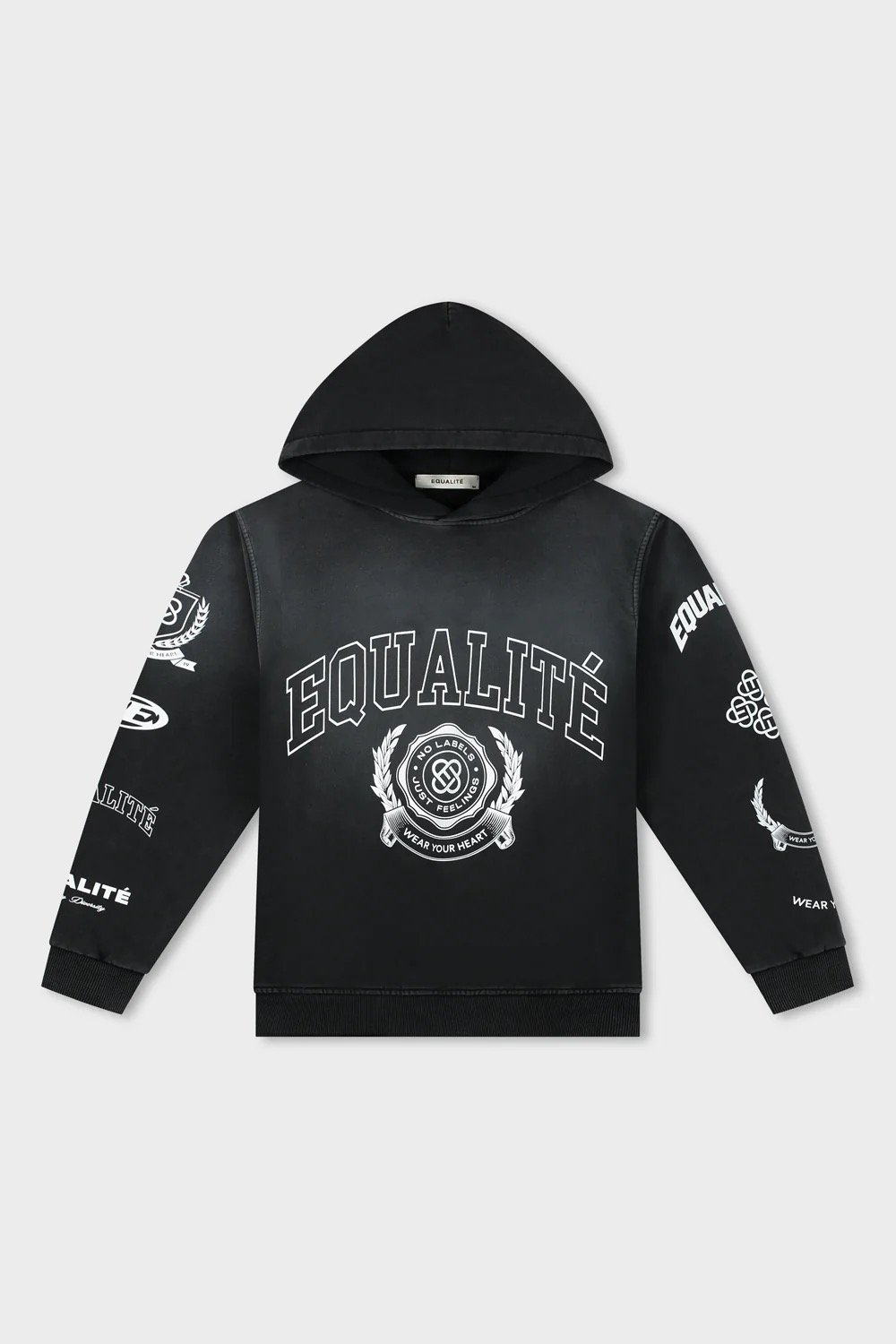 Get to know de Equalité College Oversized Hoodie in Black Washed. De hoodie heeft een oversized fit en is voorzien van een capuchon, een kangoeroezak en geribbelde boorden bij de mouwen en onderkant. Midden op de borst en op de mouwen zitten witte zeefdruk artworks.