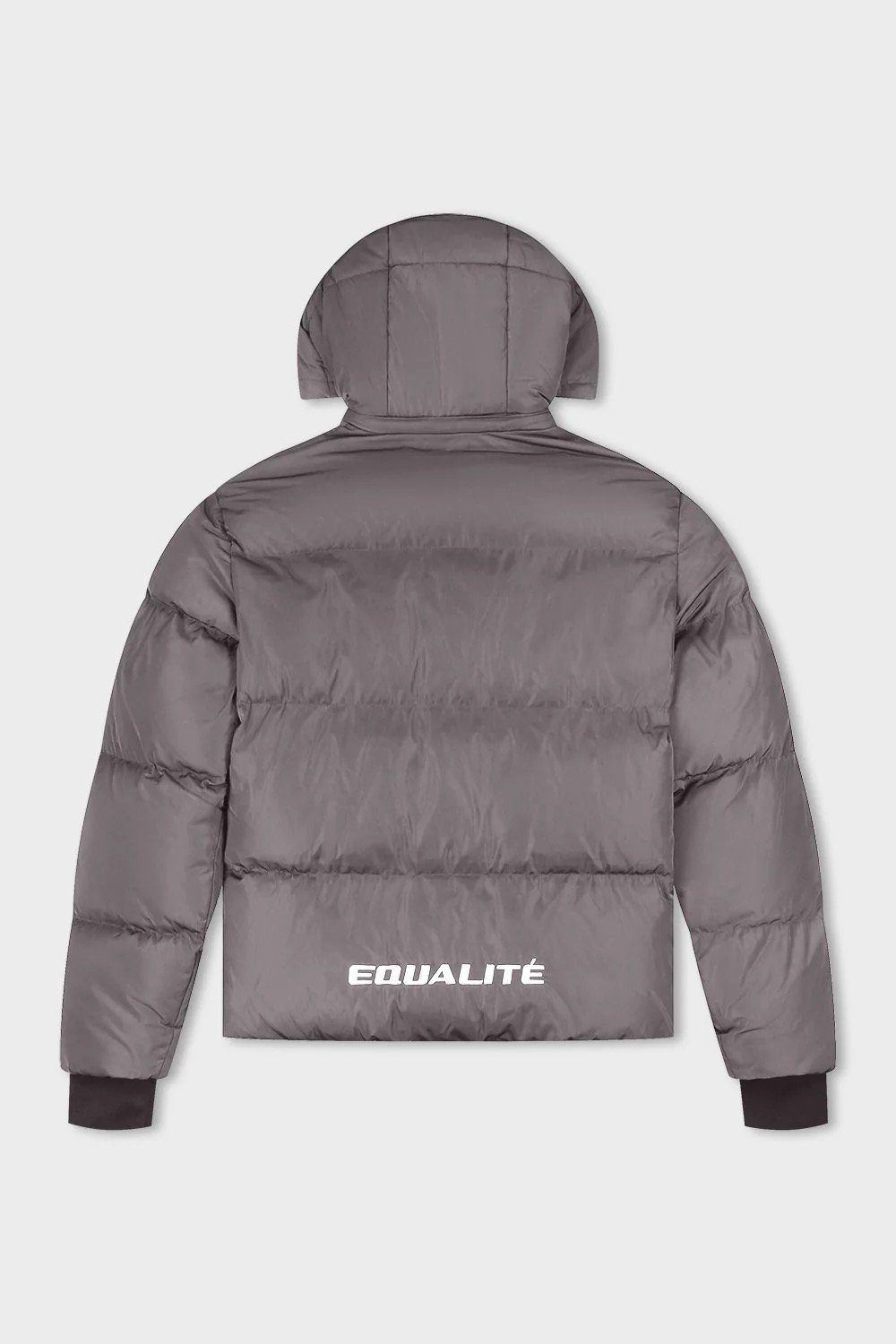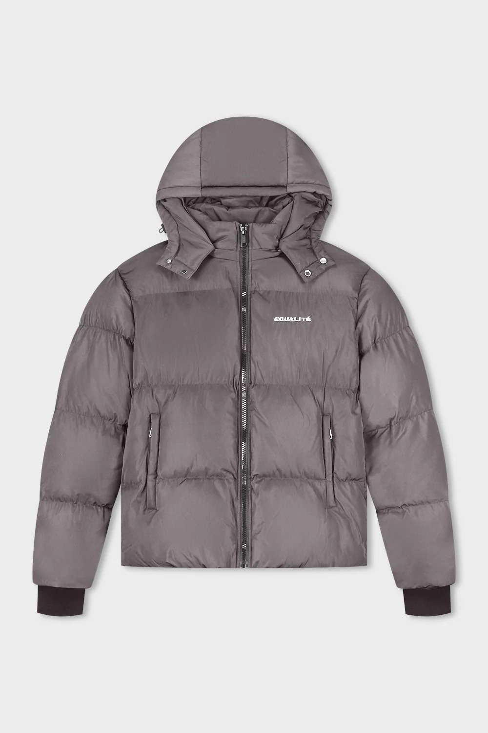 Meet de Equalité Essential Puffer Jacket in Antra. Deze regular fit-jas heeft een afritsbare capuchon en is gemaakt van lichtgewicht pufferstof met elastische manchetten. De jas is voorzien van twee zakken met rits en één binnenzak. De capuchon is verstelbaar met een koord. De jas is afgewerkt met een wit, geborduurd Equalité-logo op de linkerborst en aan de onderkant van de rug.