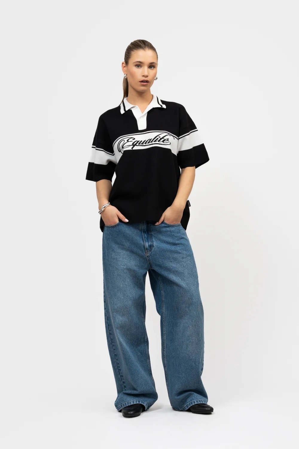 Discover de Equalité Jaden Knit Polo in Black. De knit polo heeft een oversized fit en is voorzien van een polo kraag. De borst is voorzien van een Equalité logo.