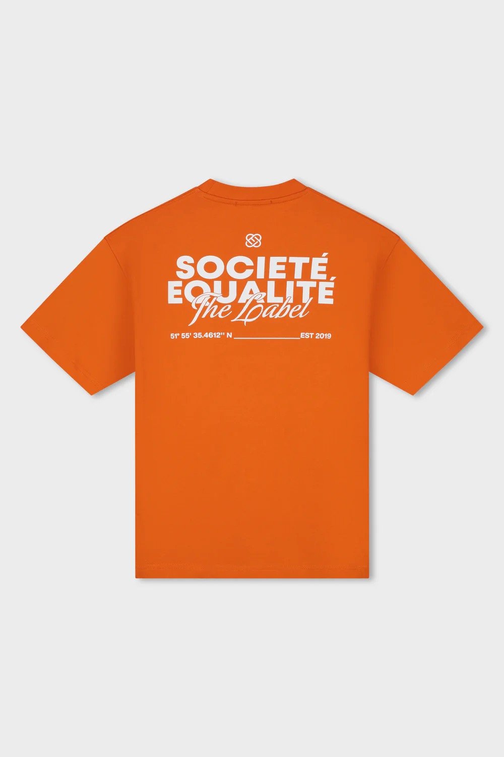 King’s Day Collection: Meet de Equalité Societé 2.0 Oversized Tee in Orange. De tee heeft een oversized fit met een ronde kraag. De linkerborst en de rug zijn voorzien van een witte puffdruk van het signature Societé logo, geïnspireerd op onze exclusieve Membersclub.