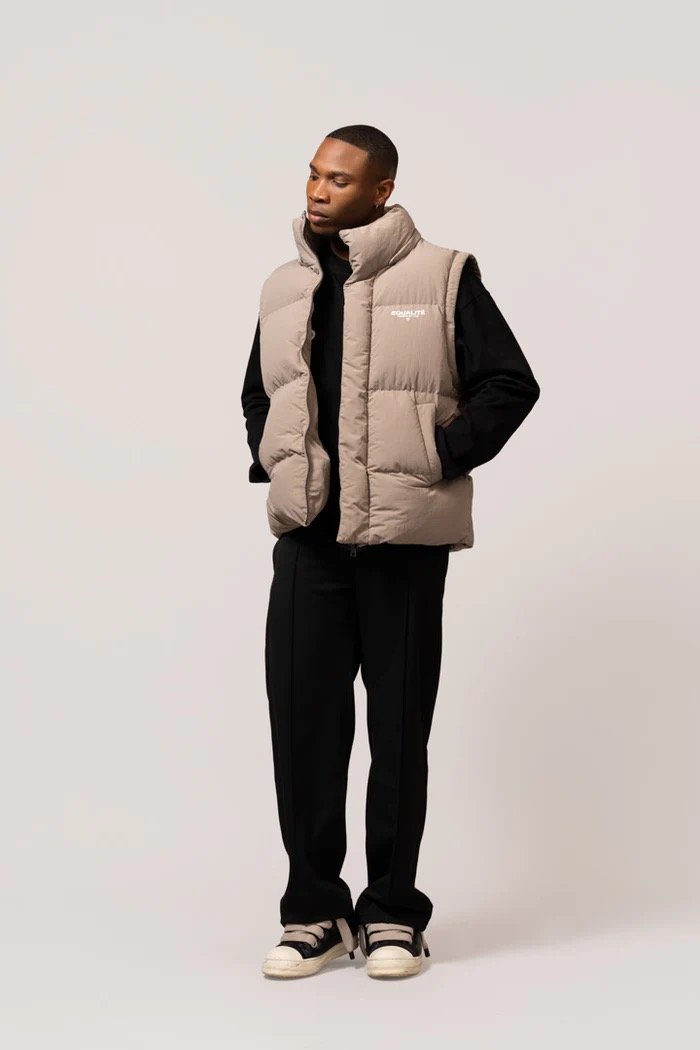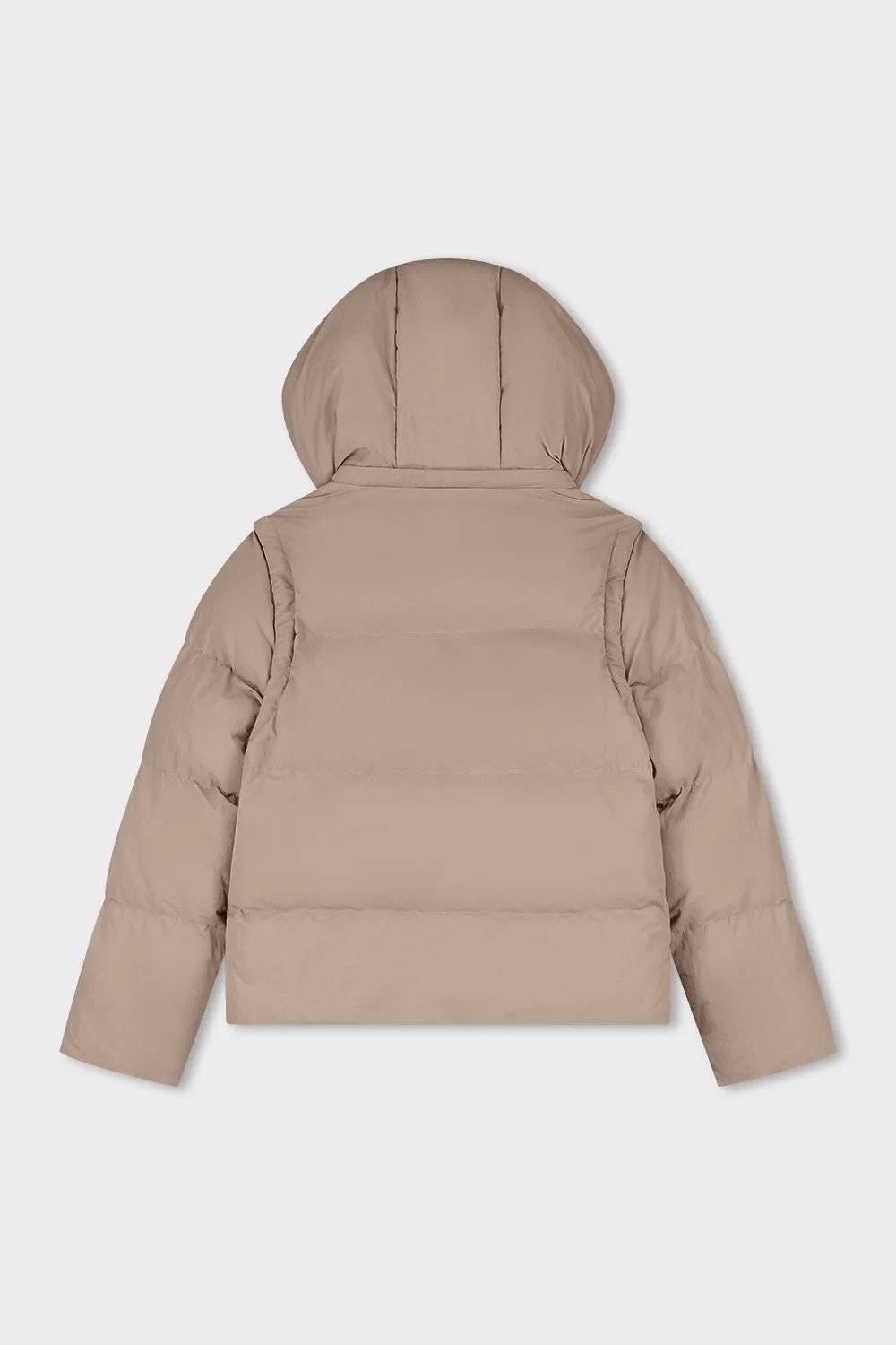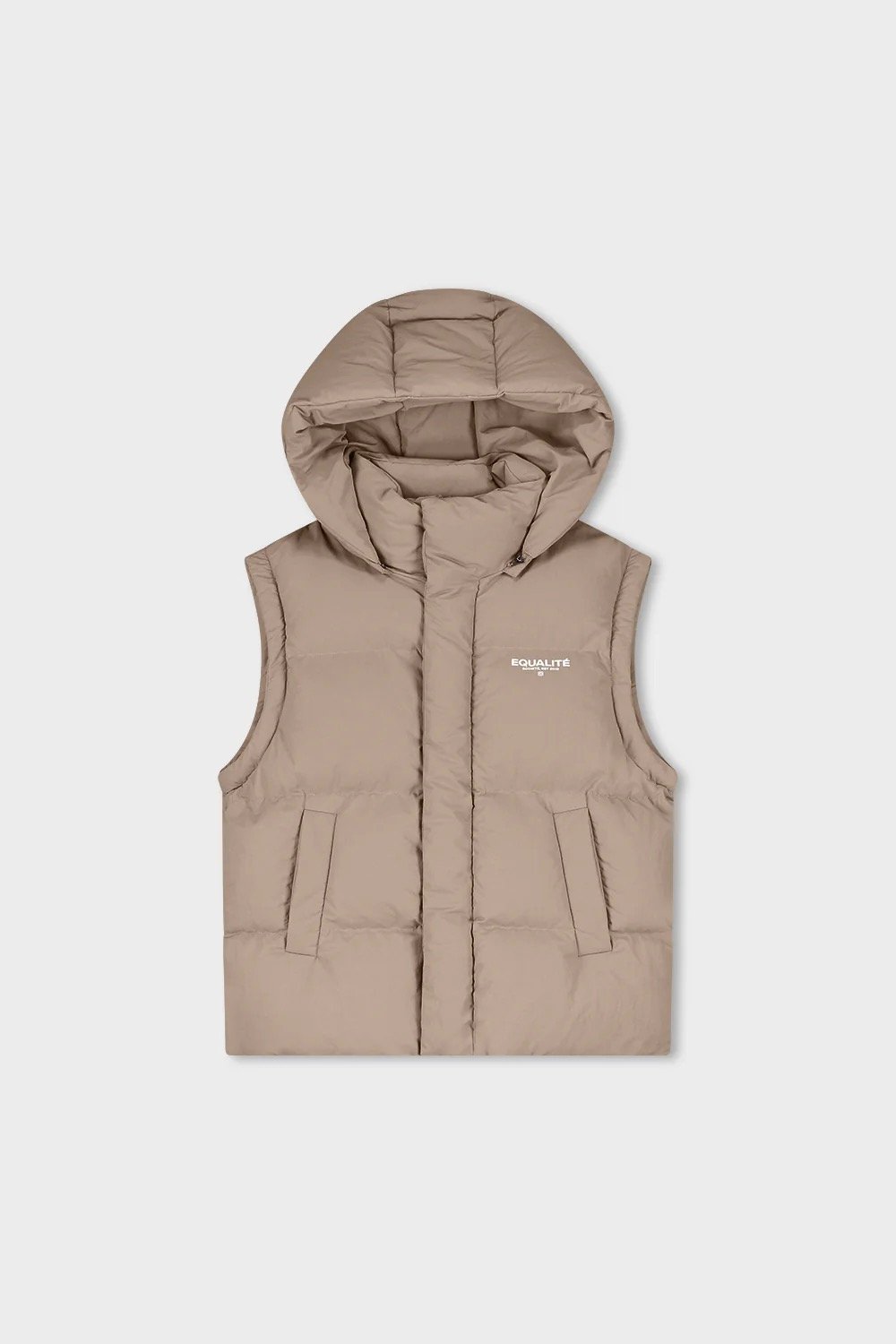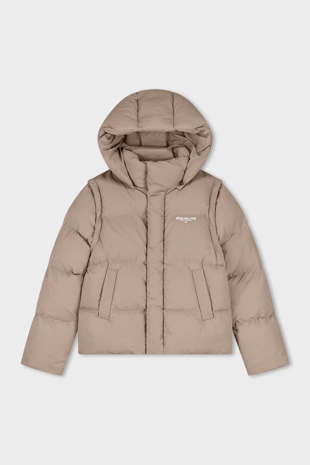 Meet de Equalité Societé Puffer Jacket in Taupe. De regular fit-jas heeft een afritsbare capuchon en mouwen, waardoor je hem zowel als puffer jacket als bodywarmer kunt dragen. De jacket is gemaakt van lichtgewicht pufferstof met elastische manchetten. De jas is voorzien van twee zakken met knoopsluiting en twee binnenzakken. Over de ritssluiting loopt een flap die eveneens met knopen kan worden gesloten. De onderkant van de jas is verstelbaar met een trekkoord voor een optimale pasvorm. De voorkant van de jas is voorzien van een wit signature Societé logo, geïnspireerd op onze Membersclub. Beide mouwen zijn afgewerkt met geborduurde Societé logo’s aan de onderzijde.