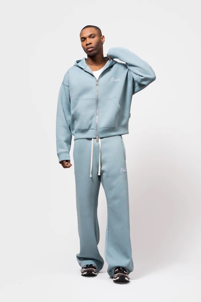Meet de Equalité Yuki Scuba Jogger Pants in Washed Light Blue. De jogger pants heeft een oversized fit voorzien van met twee steekzakken, één achterzak en een mid-rise taille met trekkoord. De jogger pants is voorzien van een wit geborduurd Equalité logo op de voorkant van het linkerbeen.