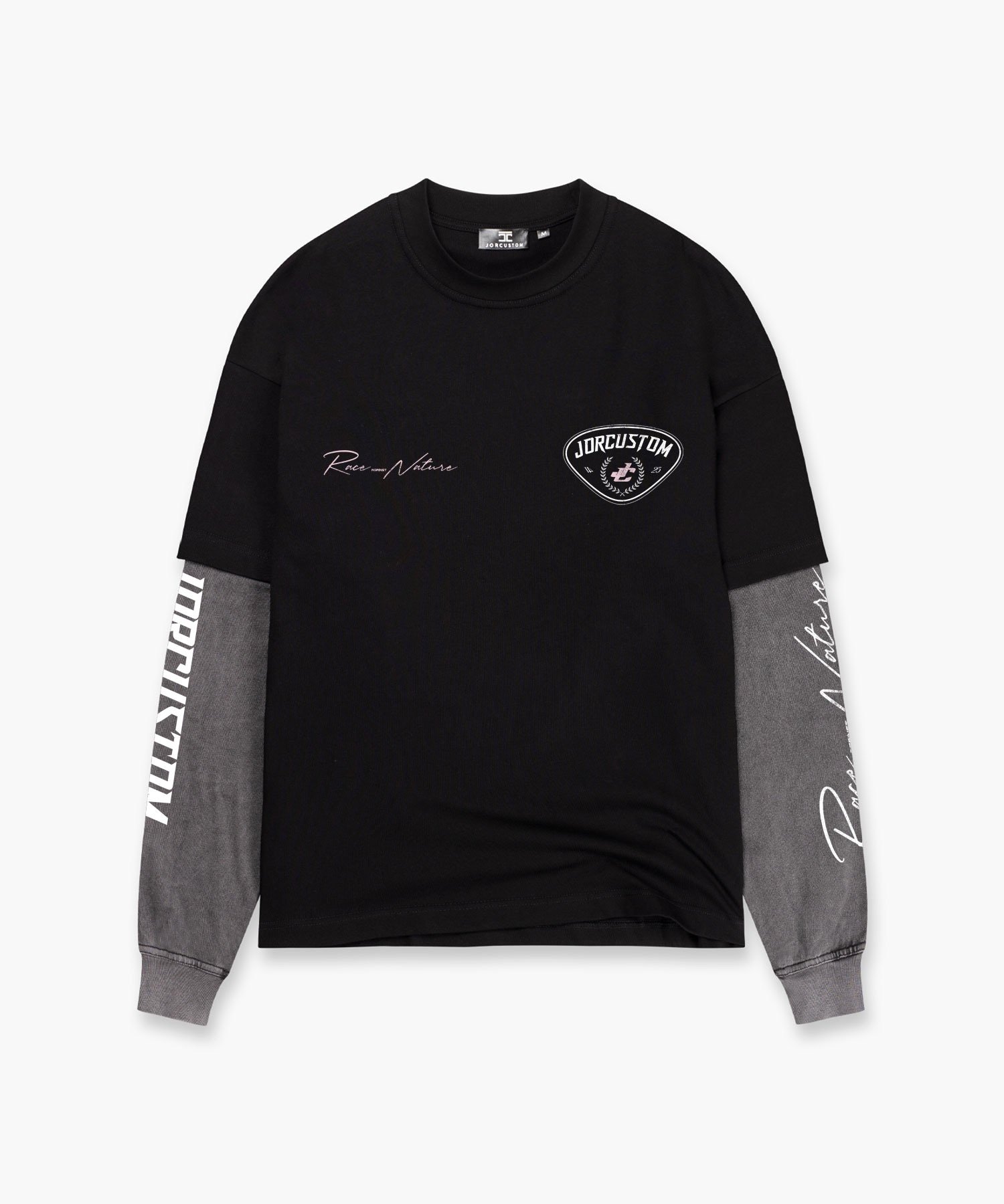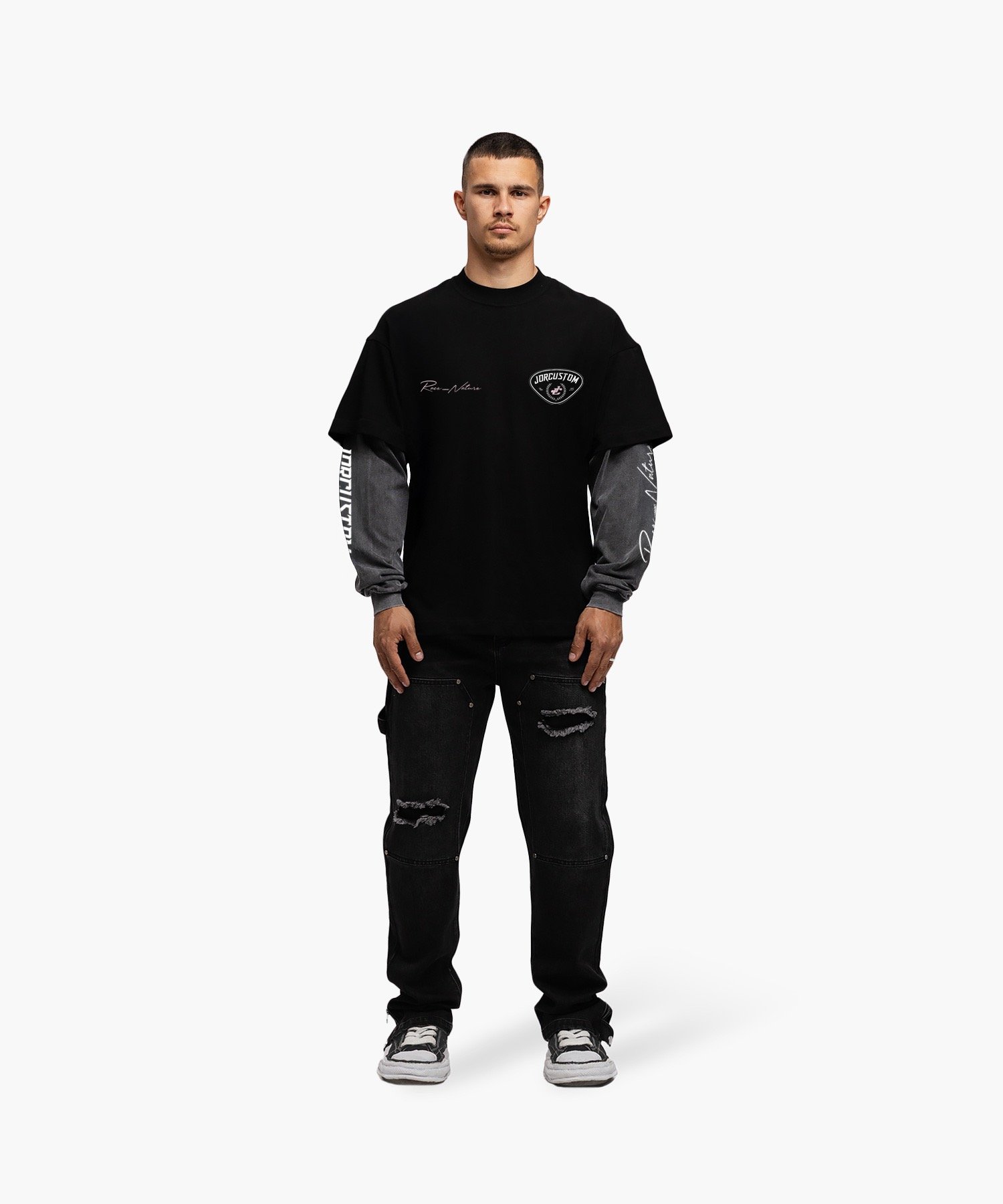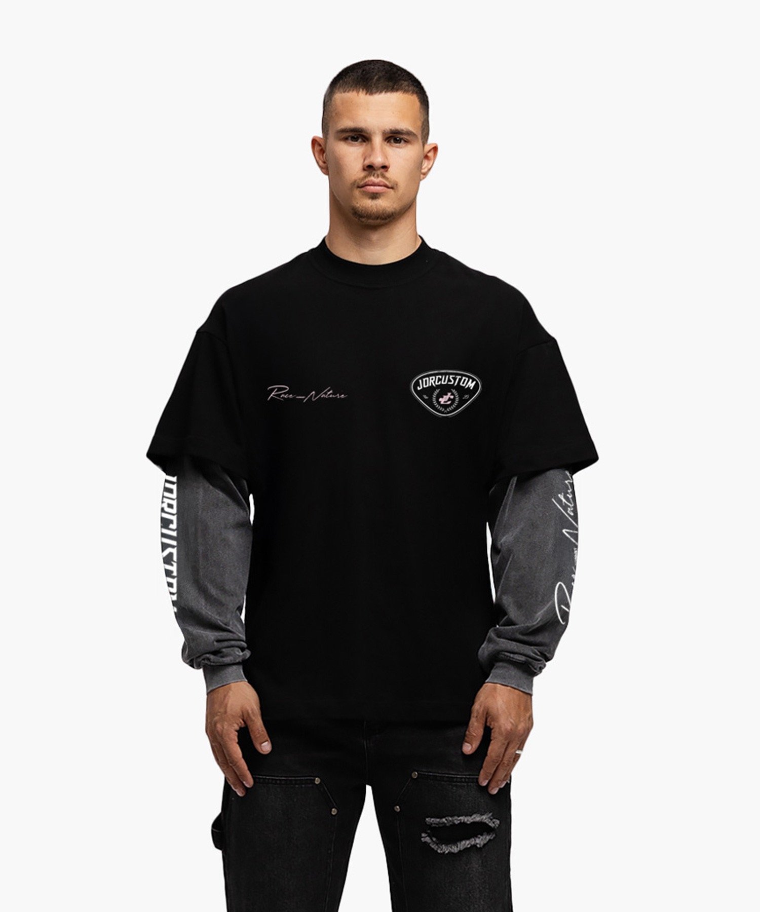 Maak kennis met ons dubbel gelaagde T-shirt met lange mouwen in de kleur zwart met Acid Grey mouwen.