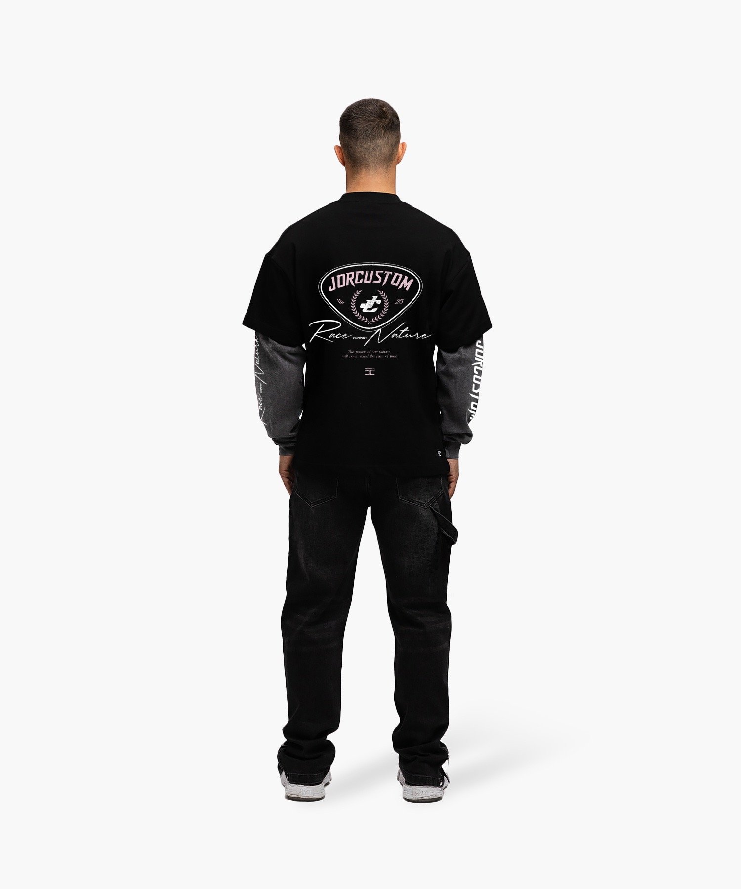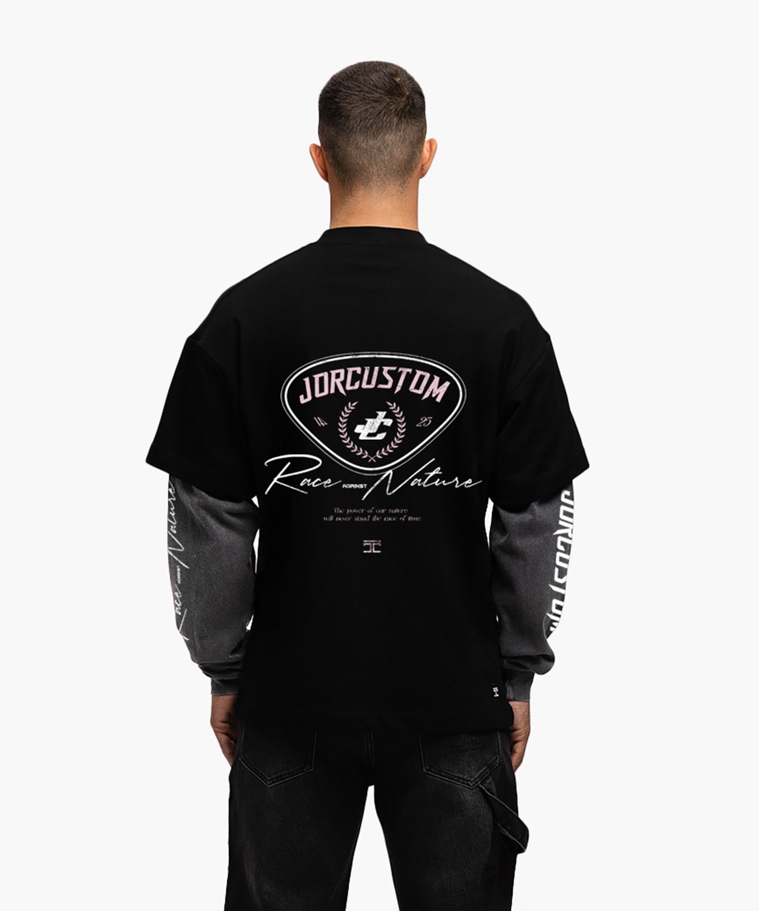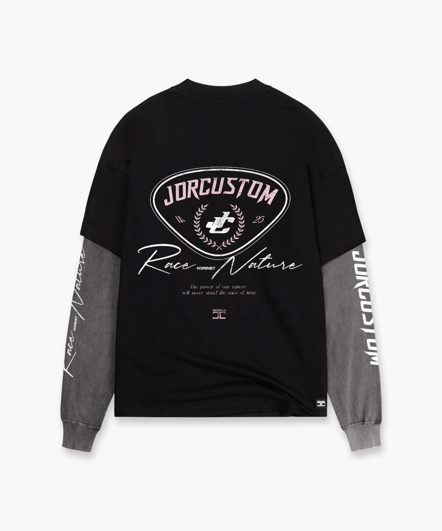 Maak kennis met ons dubbel gelaagde T-shirt met lange mouwen in de kleur zwart met Acid Grey mouwen.