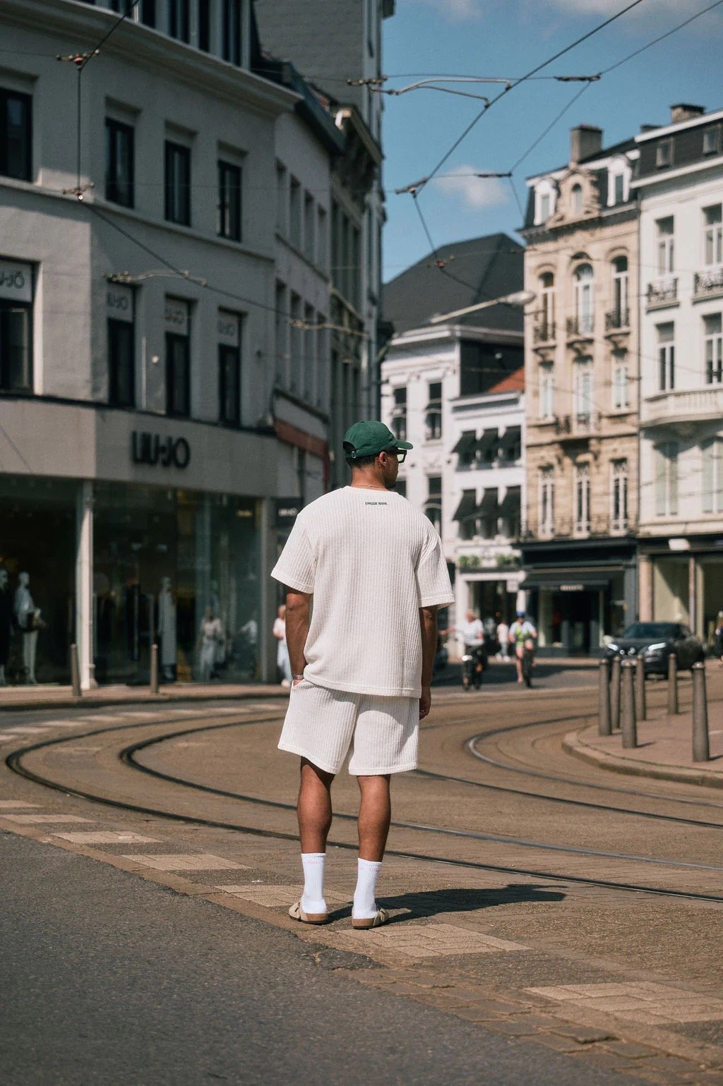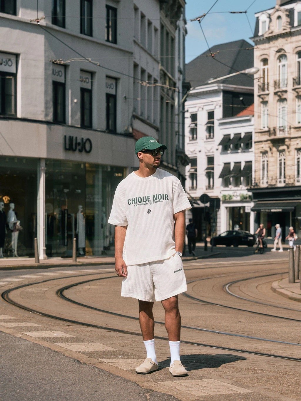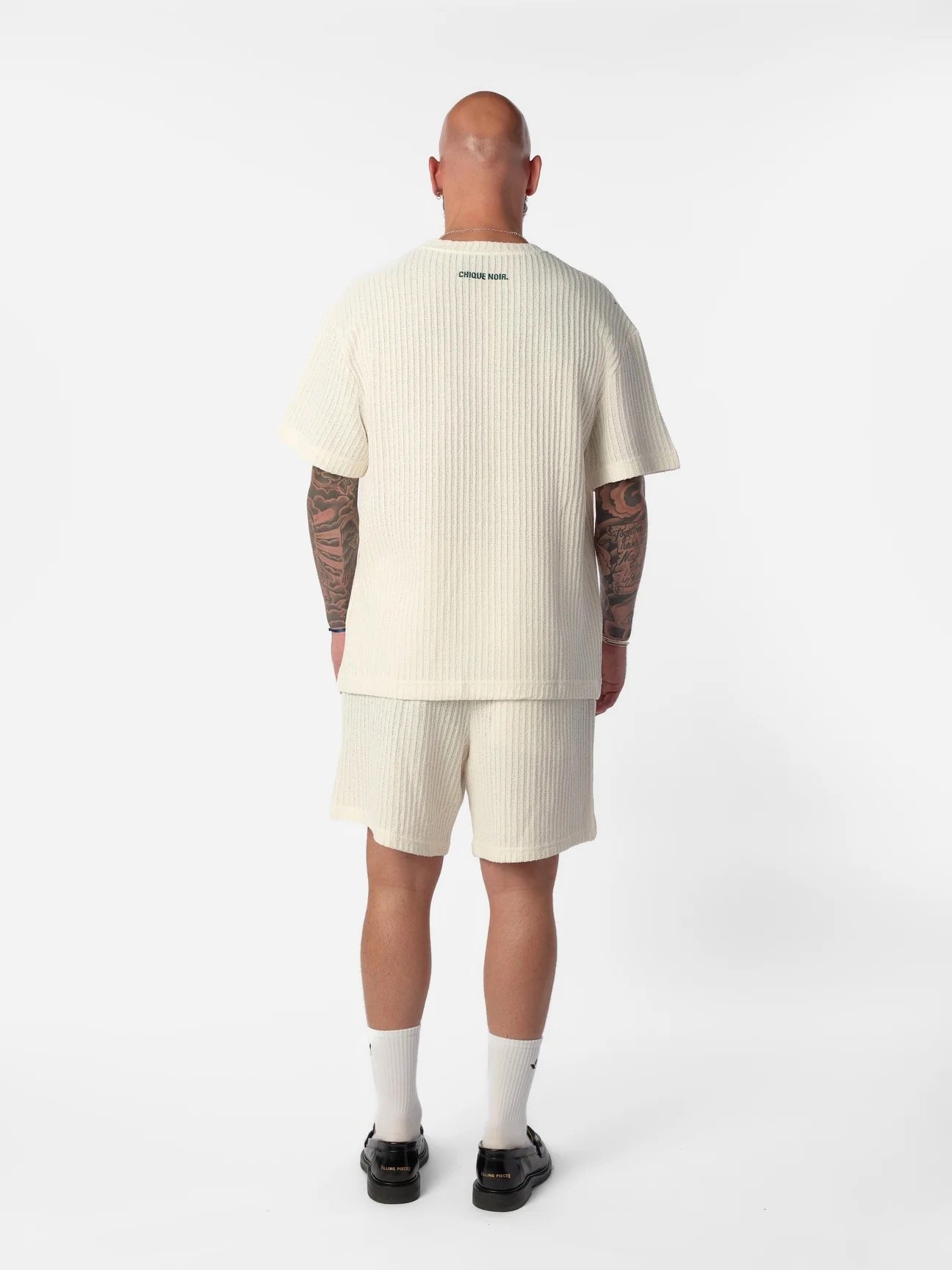 Introducing our Knitted Tee in Ecru with chest embroidery, crafted from premium materials with refined craftsmanship. The soft-touch knit and structured boxy fit make it perfect for relaxed summer looks. Pair it with our matching knitted shorts for a complete seasonal set.