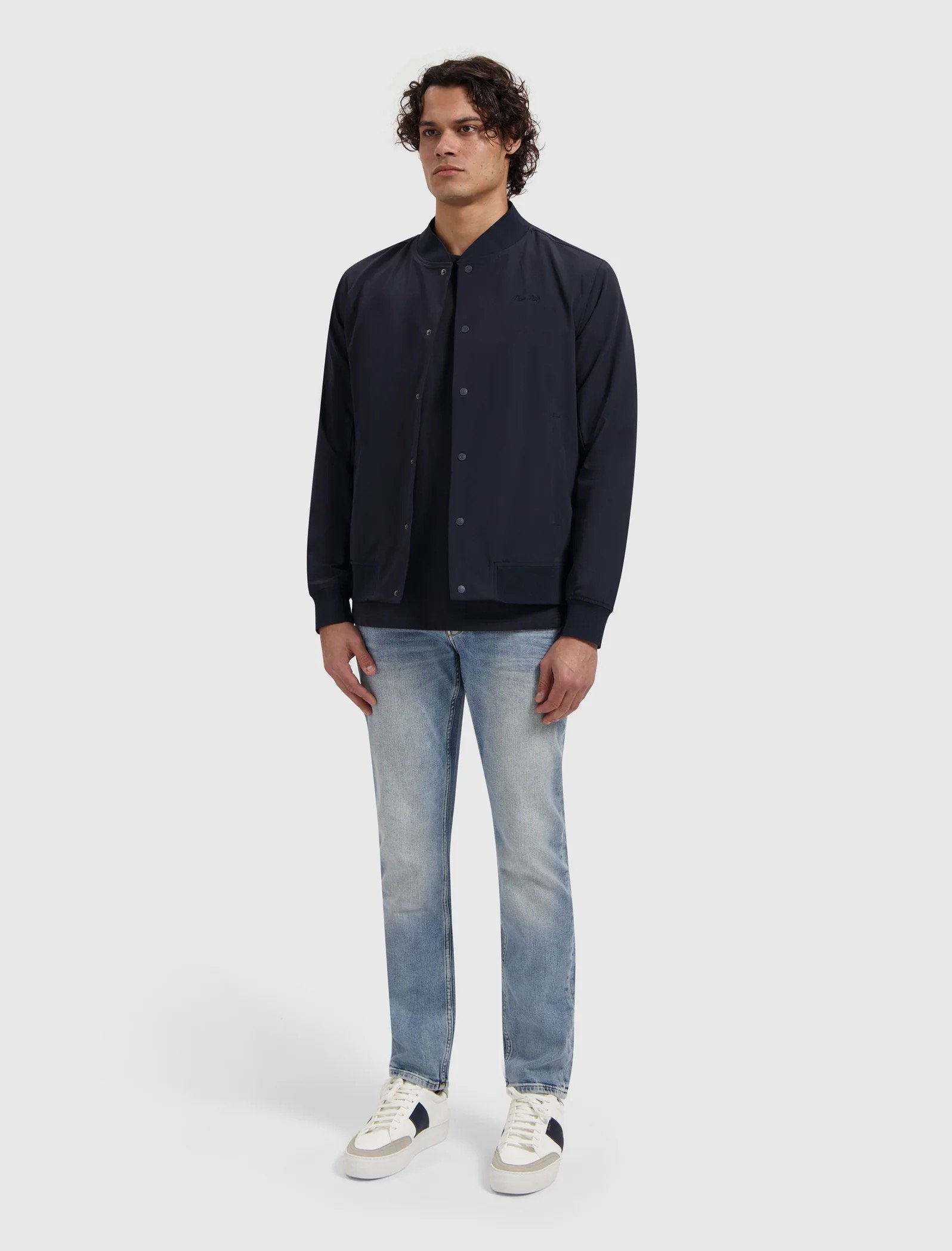 The Ryan Slim Fit Jeans has a slim fit with a tapered leg, crafted from 99% cotton and 1% elastane for comfort with subtle stretch. Finished in a light blue tone with a random and stone wash, enhanced by whiskers for a clean and natural character. Designed with a button fly, front and back pockets, triangle embroidery and a leather logo patch.