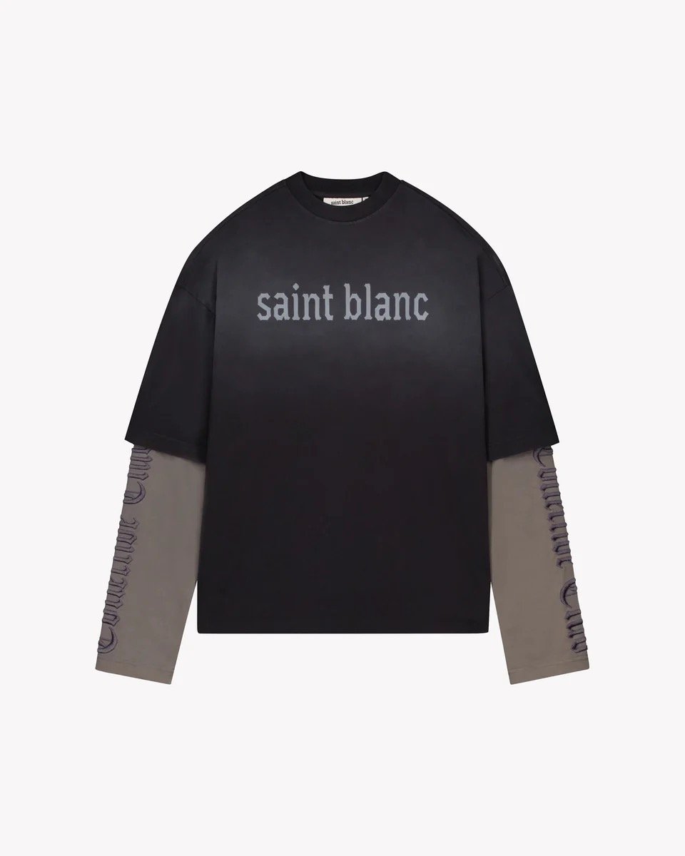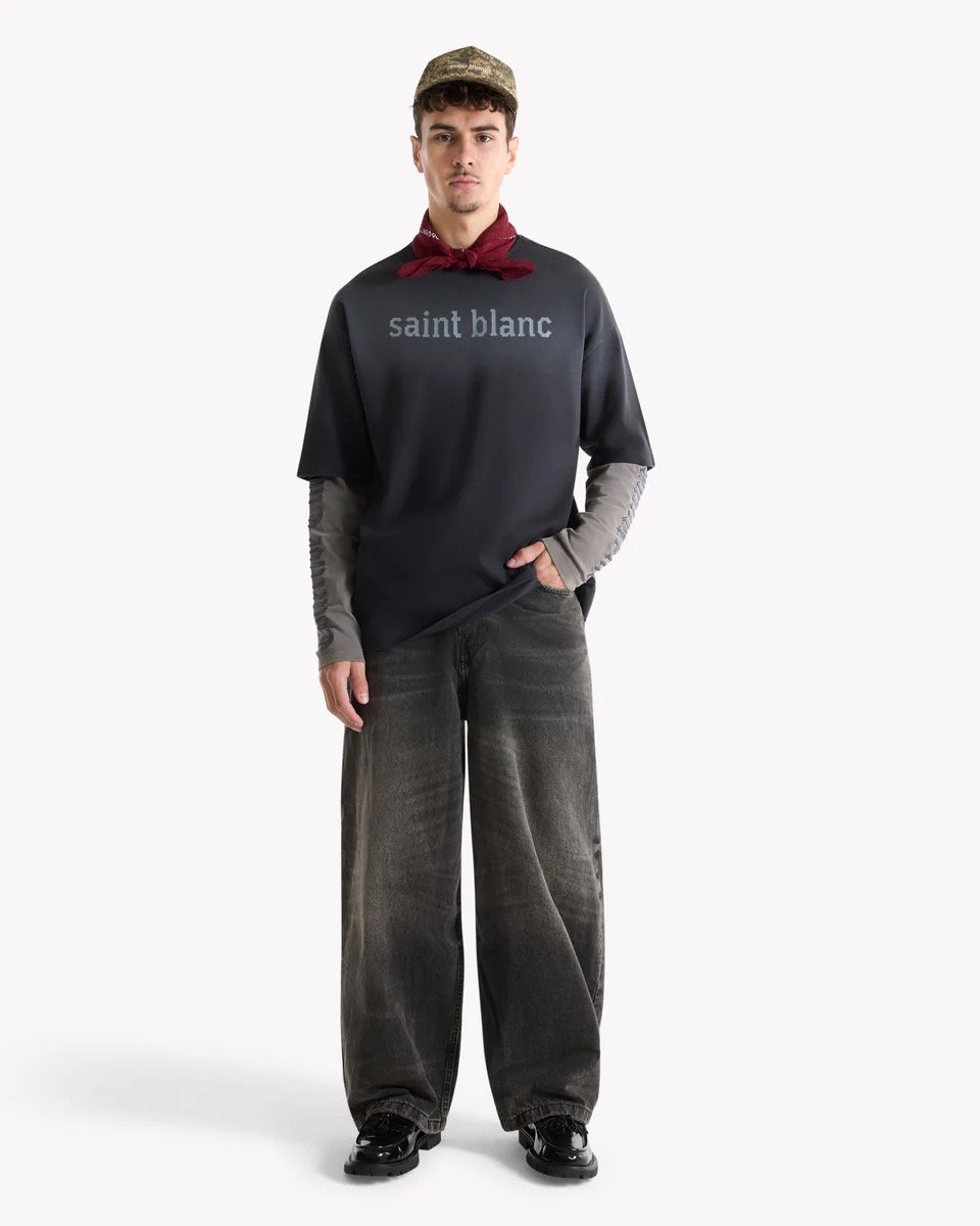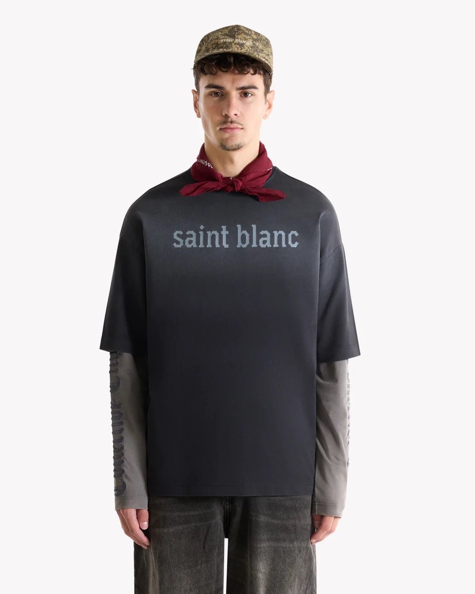 Introducing the Collective Double Long Shirt: a layered piece that blends minimal design with bold details. Made from premium cotton jersey with a two-in-one construction — combining a washed short sleeve with extended contrast sleeves underneath. Features tonal Saint Blanc logo print on the chest and Collective Clubgraphics along the sleeves. Finished with a slightly oversized fit for a relaxed look.