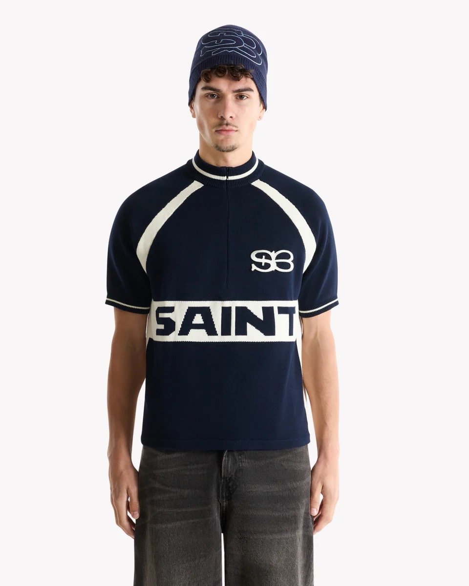 Introducing the Cycling Knit Polo: inspired by vintage sportswear, reimagined with Saint Blanc’s signature edge. Crafted from midweight stretch knit for a structured yet comfortable fit. Featuring bold SAINT / BLANC contrast panels and embroidered SBlogo at the chest. A standout layering piece built for all-season wear.