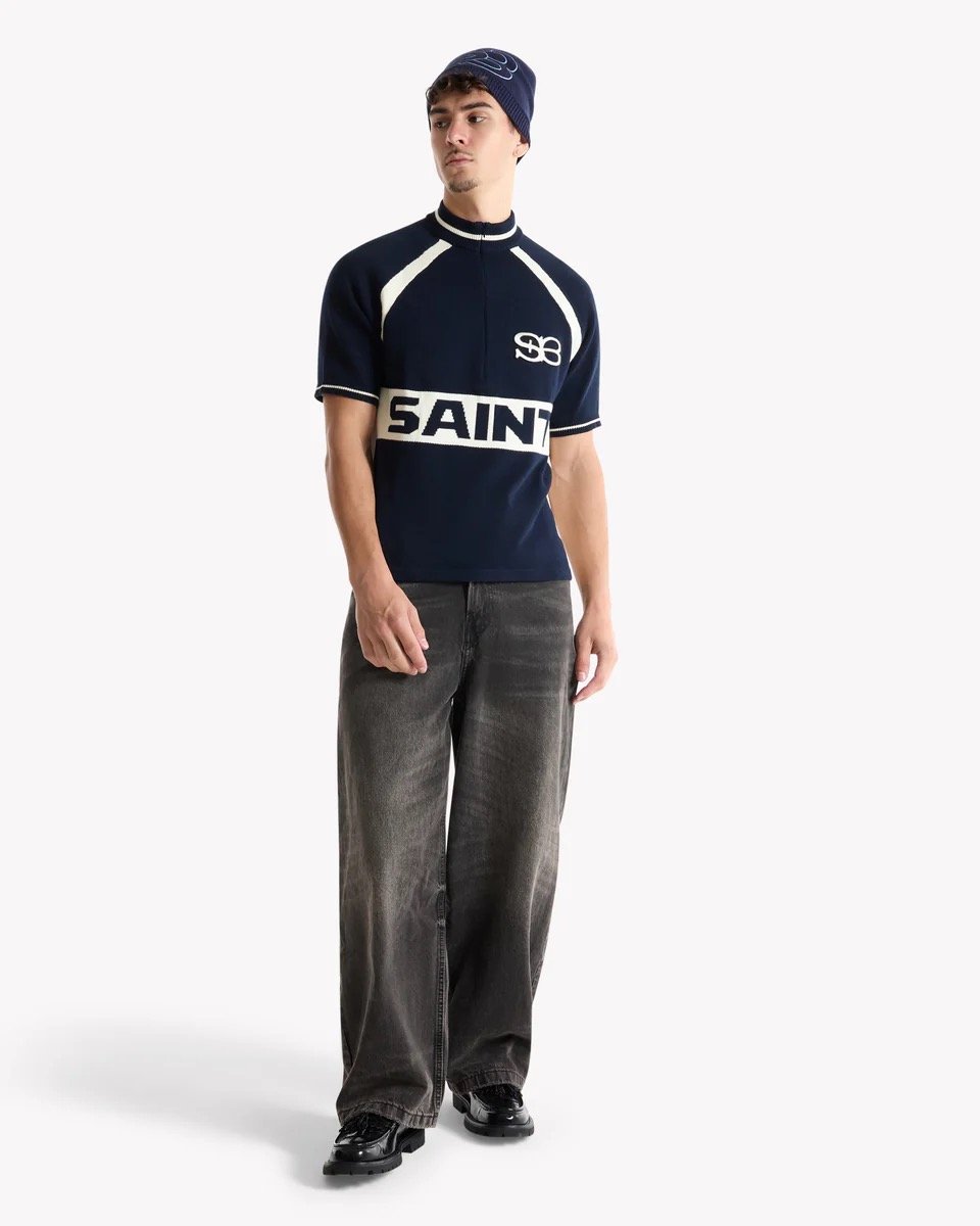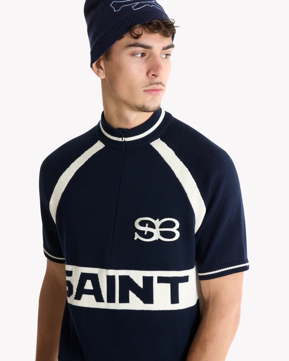 Saint Blanc Cycling Knit Polo – Black Iris & Off-White