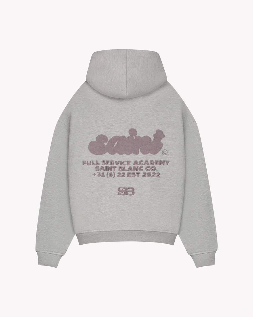 Introducing the Full Service Hoodie: built for everyday wear with the Saint Blanc signature aesthetic. Crafted from premium heavyweight fleece with a soft brushed inside. Features puff embroidery Saint Blanc Full Service Academy artwork on the back and a matching chest print on the front. Designed with a relaxed loose fit, ribbed cuffs and hem, and a spacious kangaroo pocket.