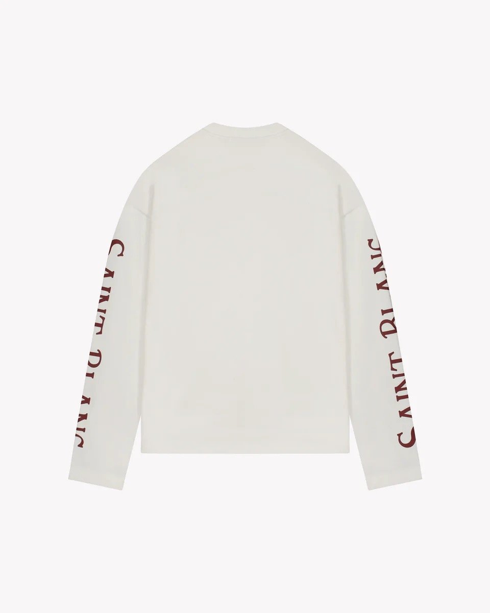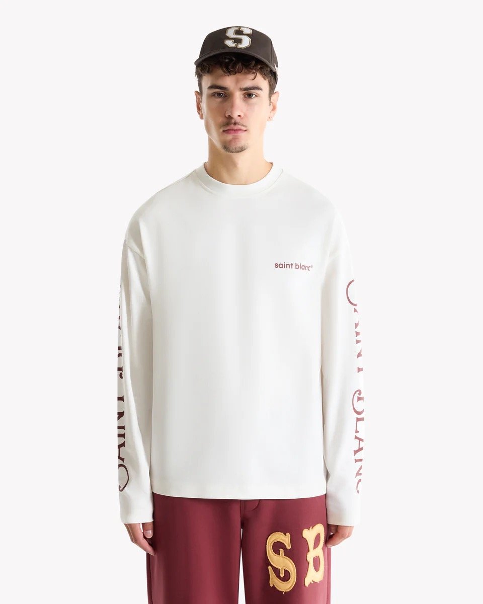 Introducing the Whisper Long Shirt: a clean essential built for layering or standalone wear. Crafted from soft midweight cotton jersey with a smooth handfeel and structured drape. Features subtle Saint Blanc chest branding and bold logo prints along both sleeves for a balanced mix of minimalism and statement. Designed with a straight, relaxed fit for everyday ease.