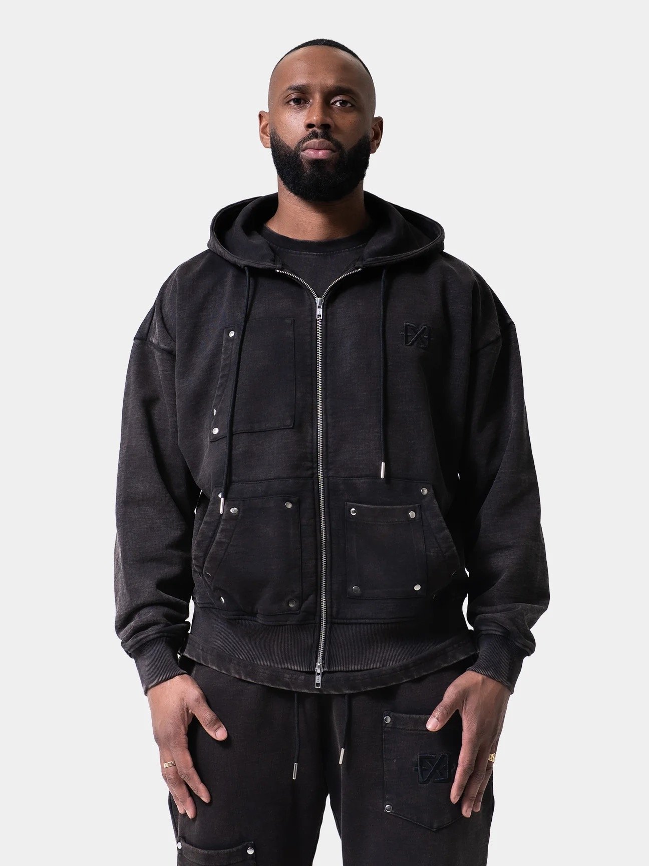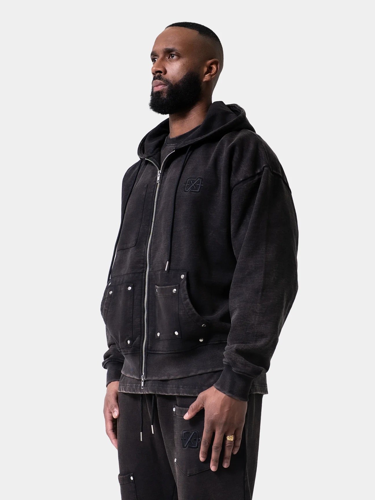 Styling tip: Combineer de hoodie met de bijpassende jogger en tee voor een gecoördineerde utility look, of draag hem los met jeans voor een krachtige, casual fit.